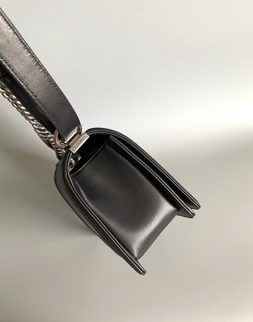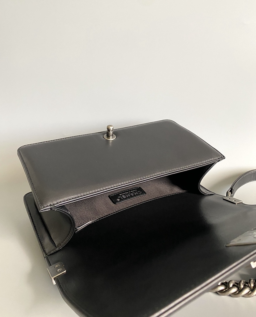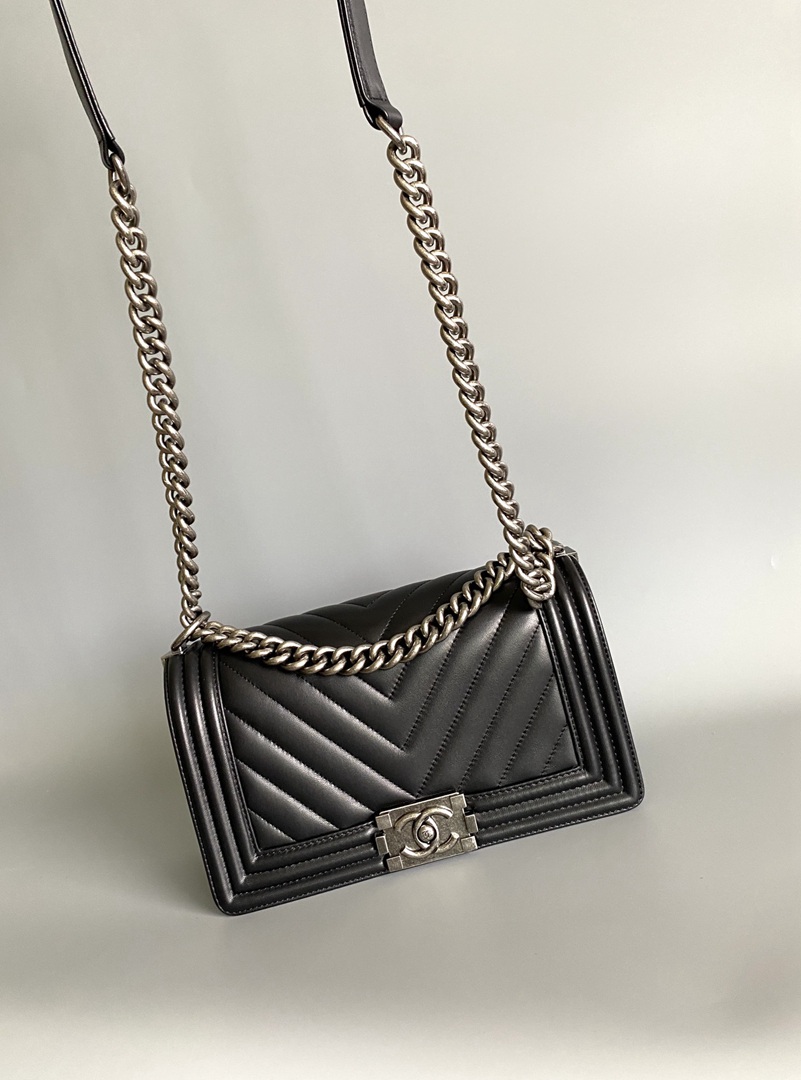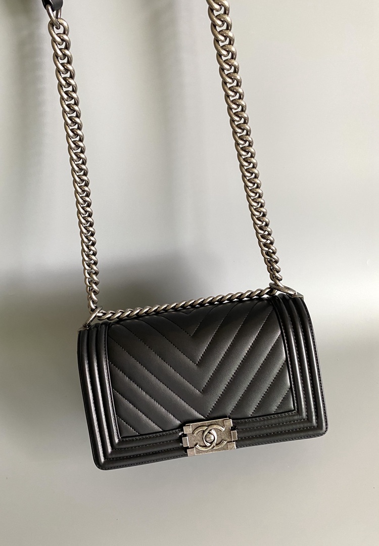 chanel leboy black Caviar Chevron Quilted sliver medium