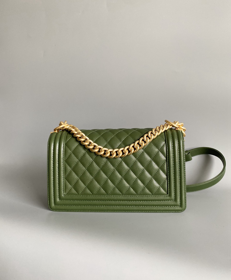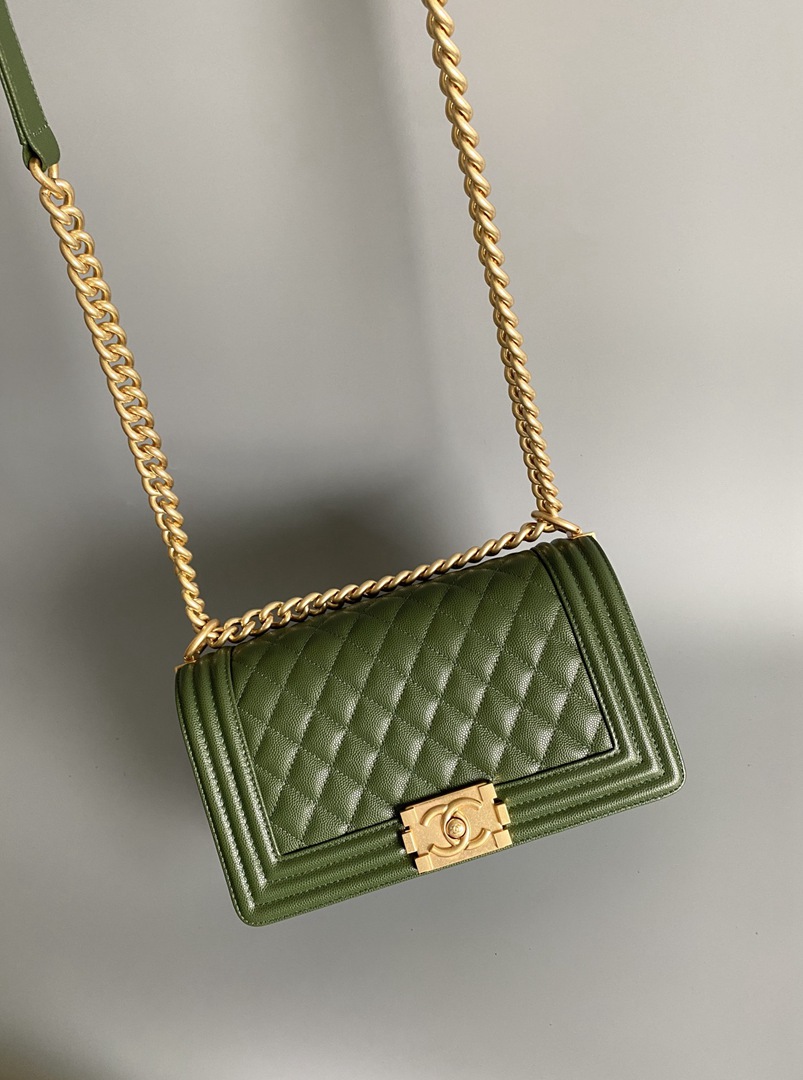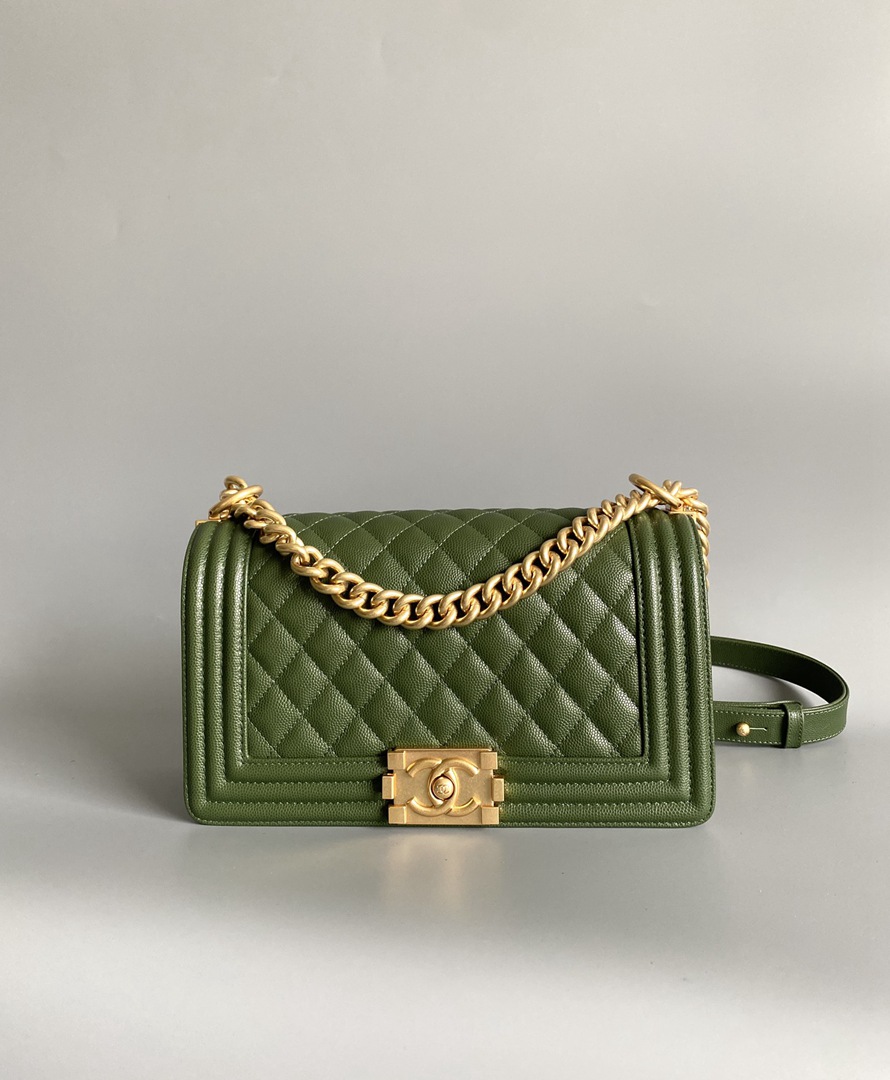 chanel leboy green Caviar Quilted gold hardware medium