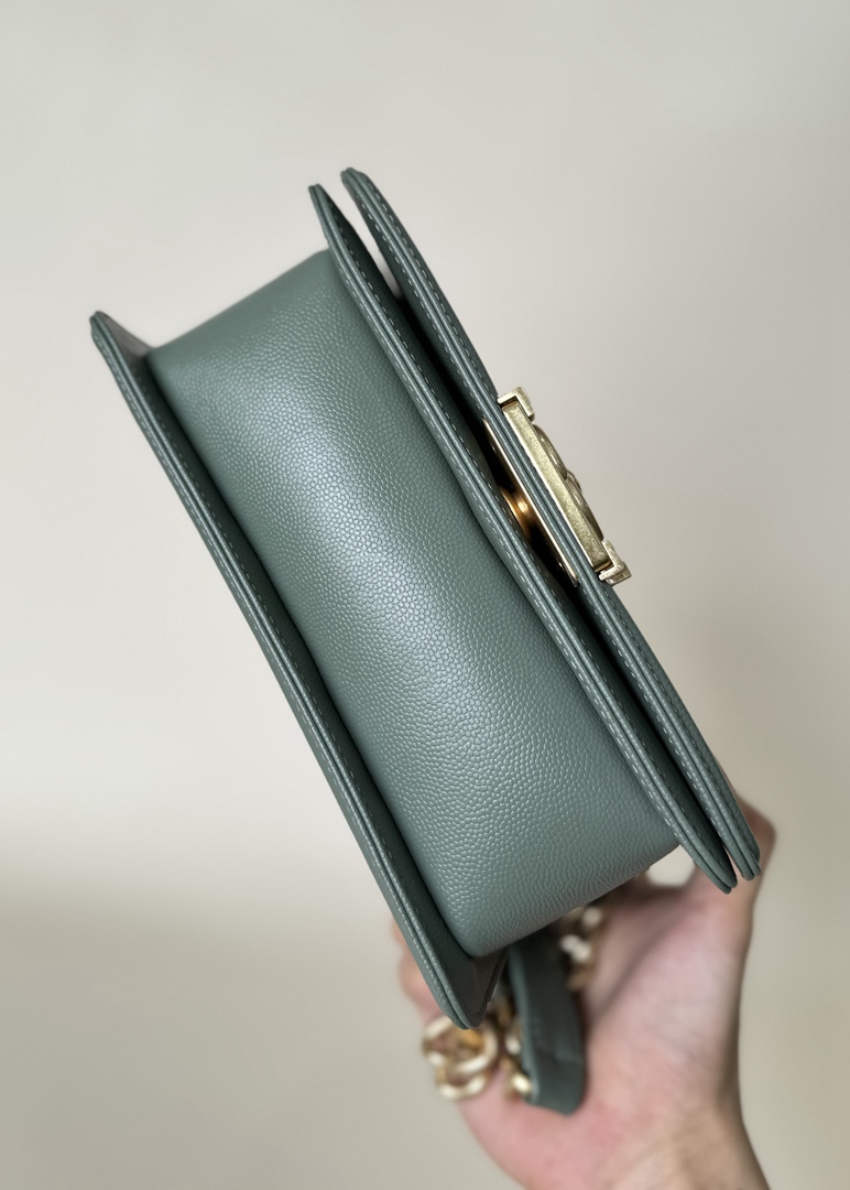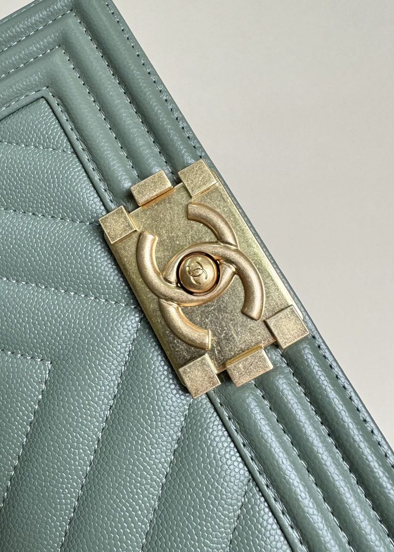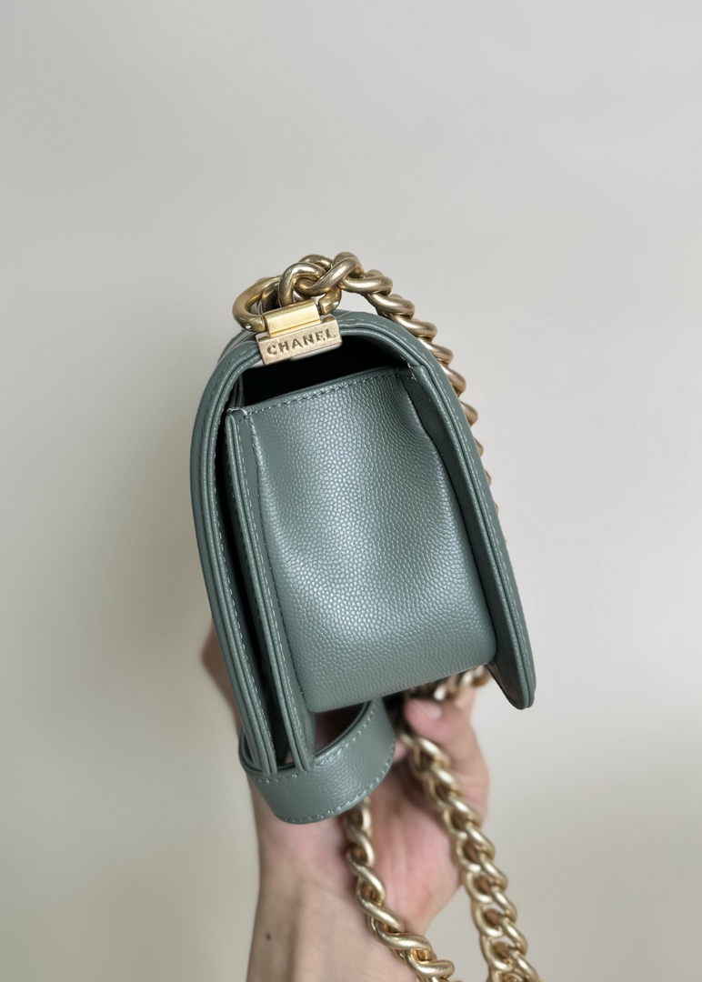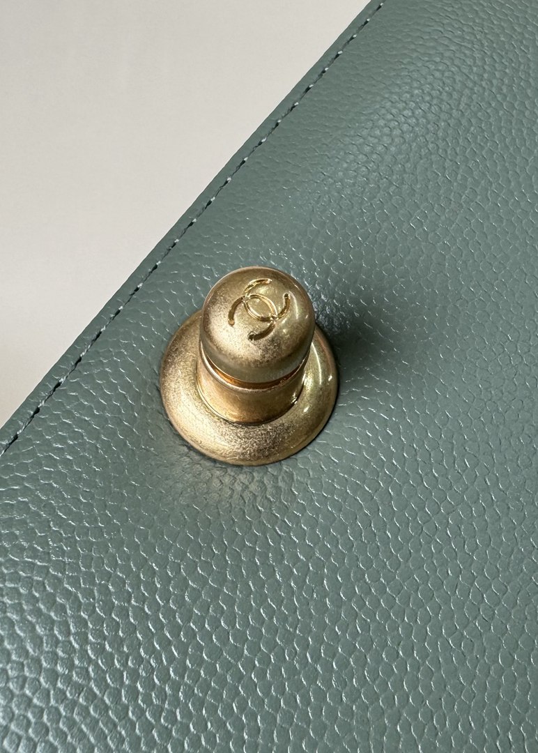 chanel mini leboy matcha green Caviar Chevron Quilted gold hardware small
