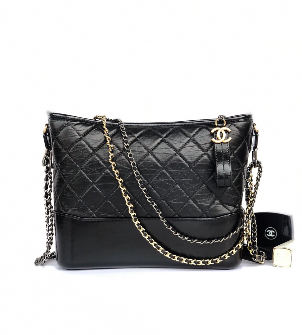 chanel gabrielle hobo bag black aged calfskin gold hardware large