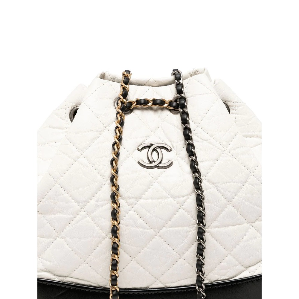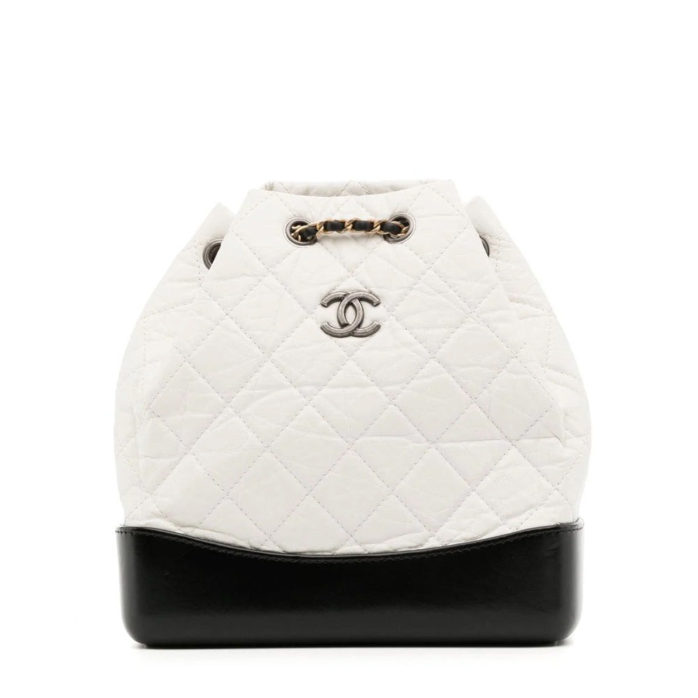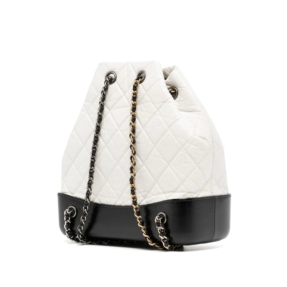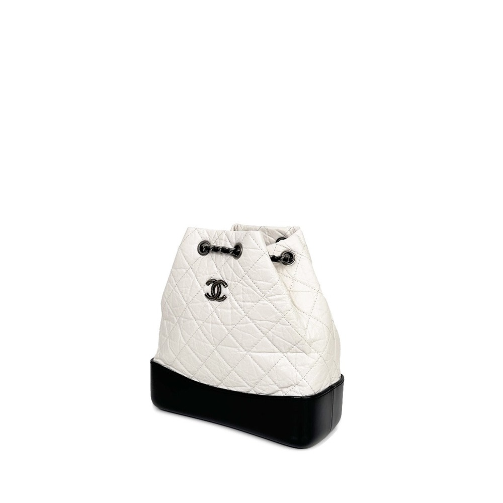 Chanel Patent Goatskin Quilted Small Gabrielle Backpack White and Black