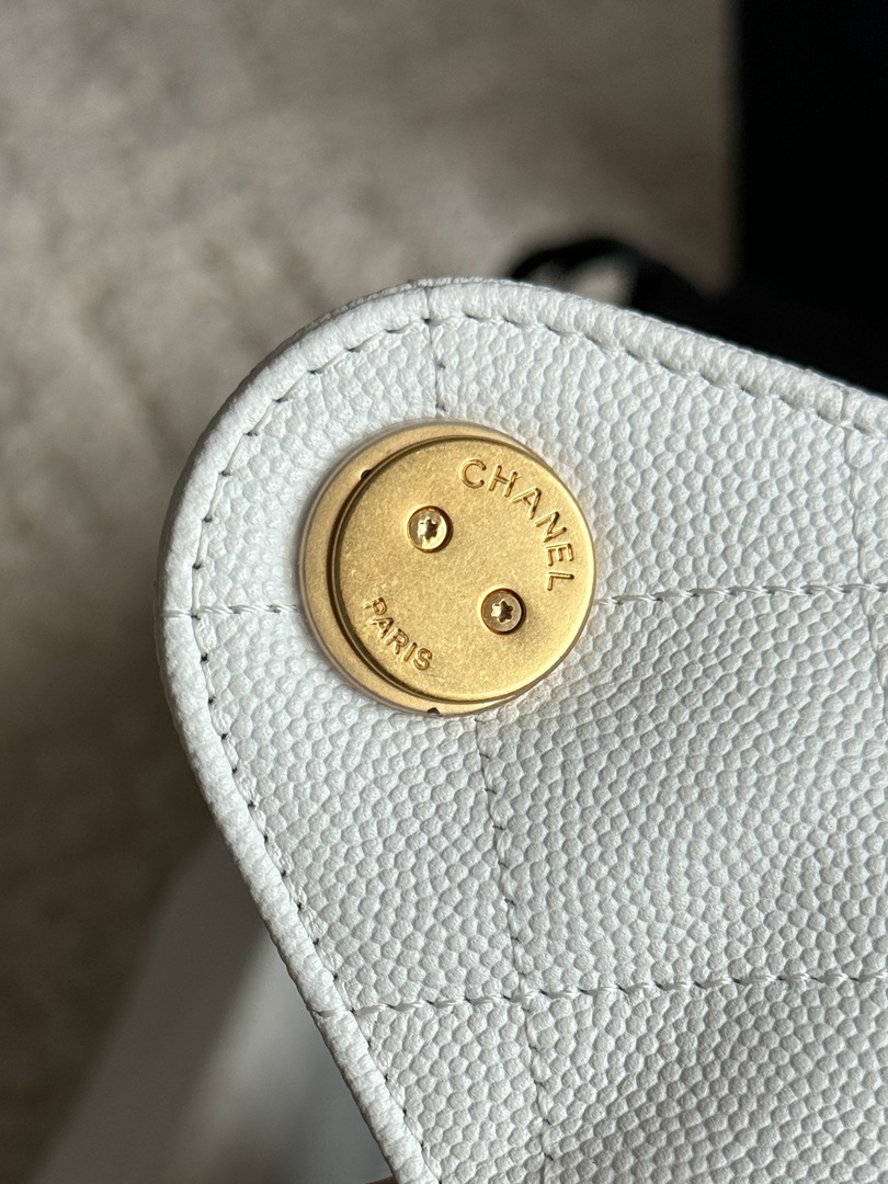 CHANEL 25C Hobo Handbag?Grained Calfskin & Gold-Tone Metal White