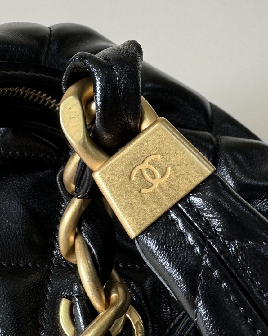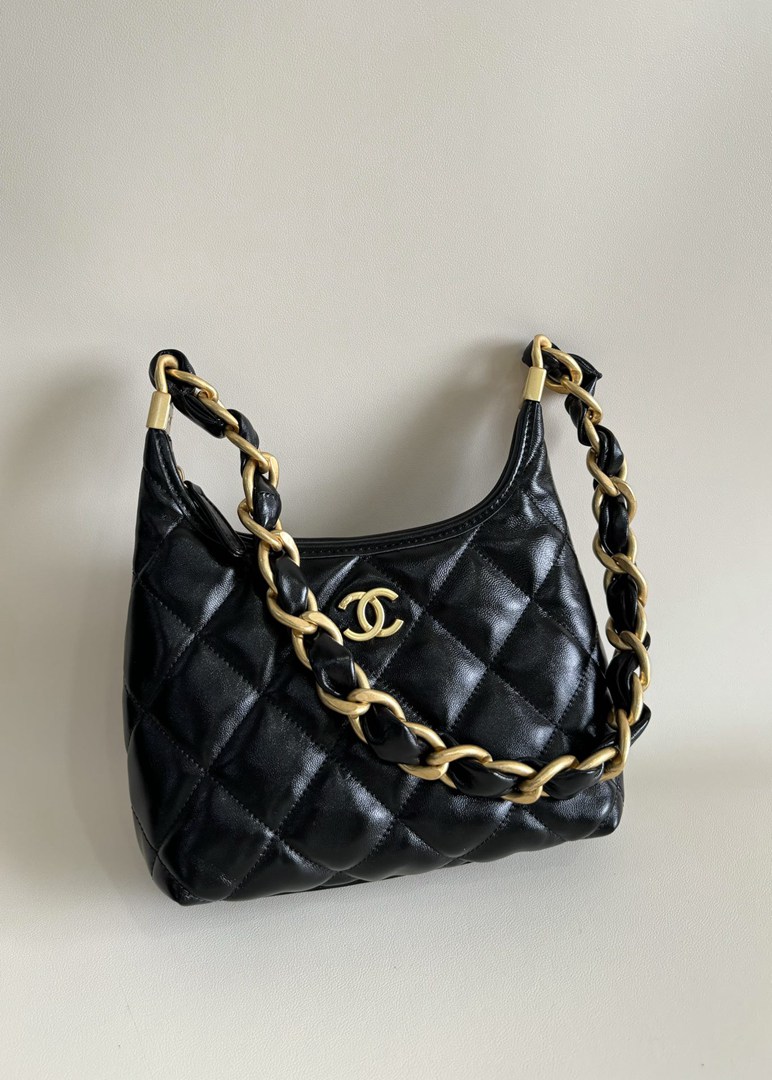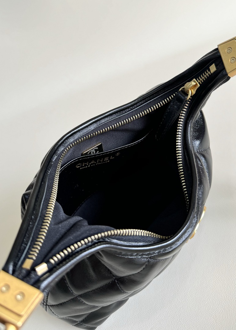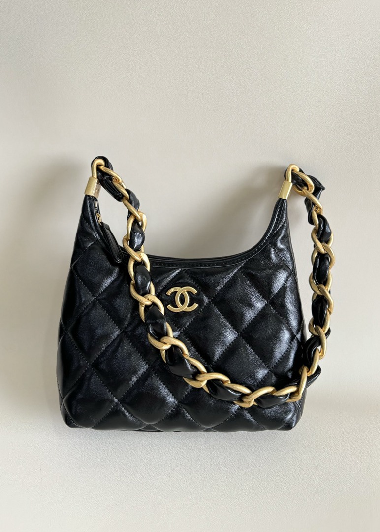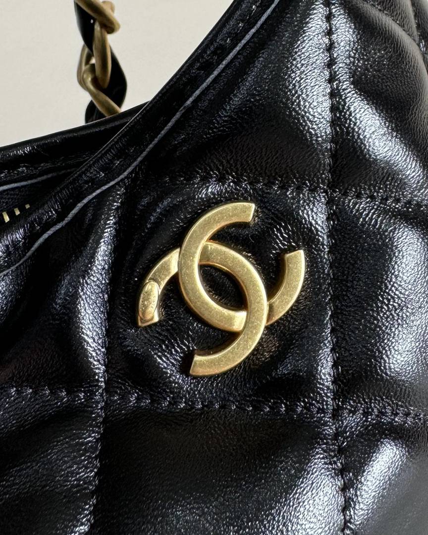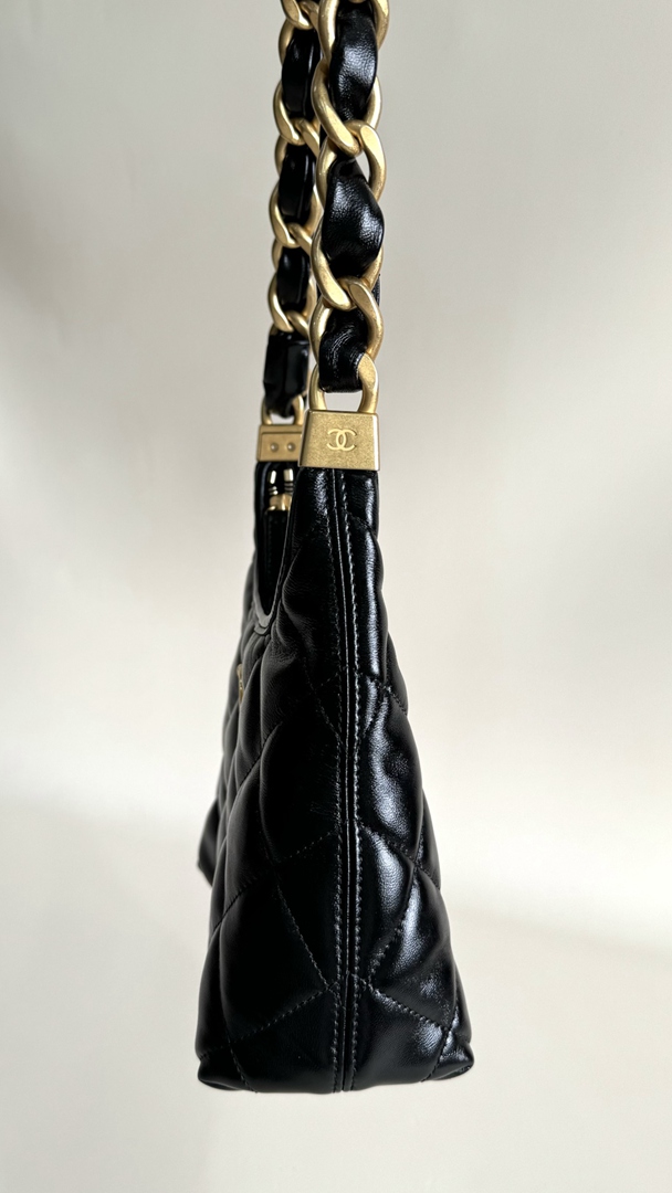 chanel 24A hobo bag black shiny lambskin gold hardware medium