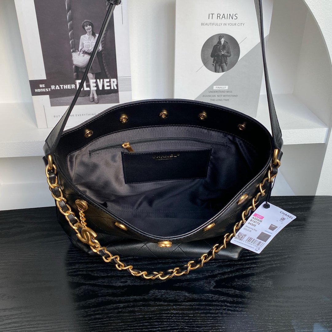 chanel 25p hobo bag black calfskin leather gold hardware