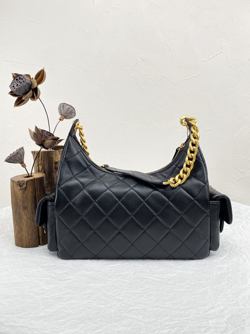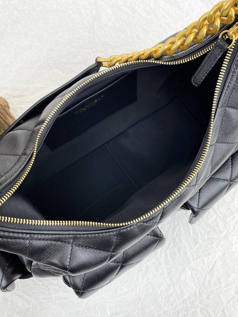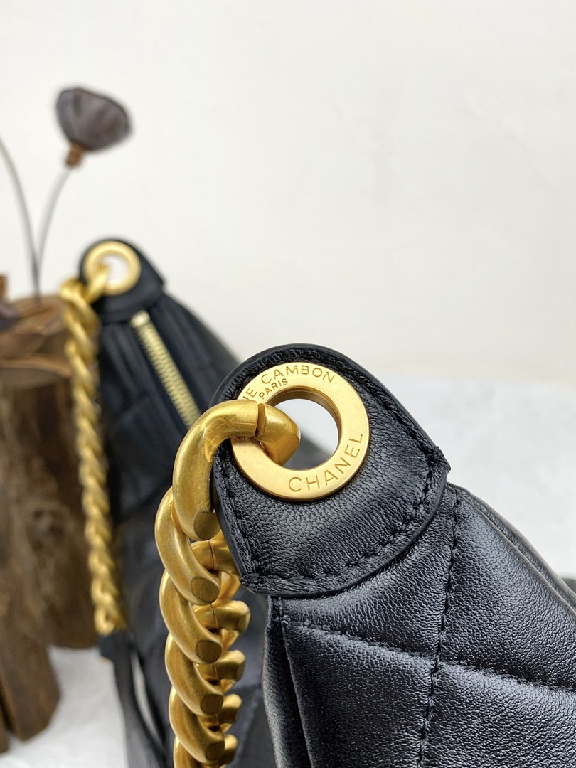 chanel 25c hobo bag black shiny lambskin gold hardware large