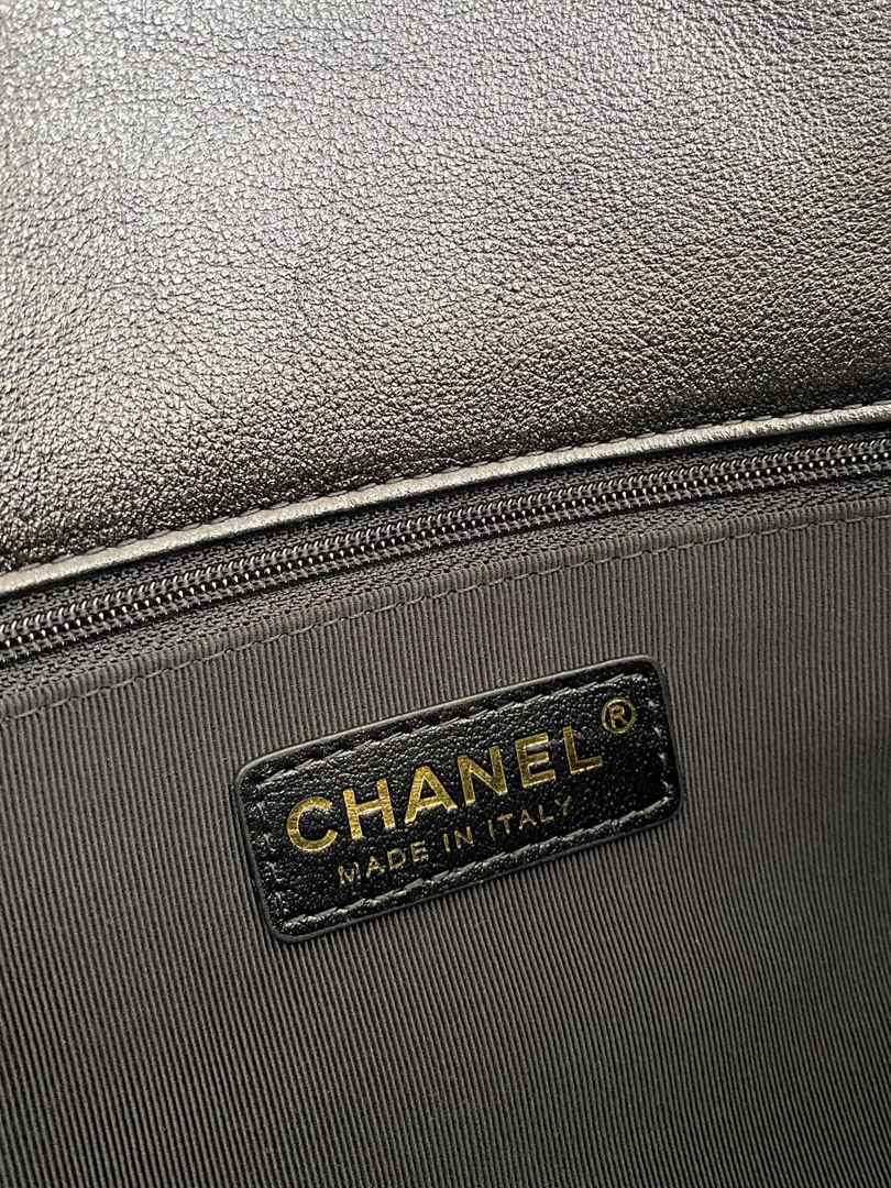 chanel 24p Double Pocket hobo bag black shiny calfskin gold hardware small