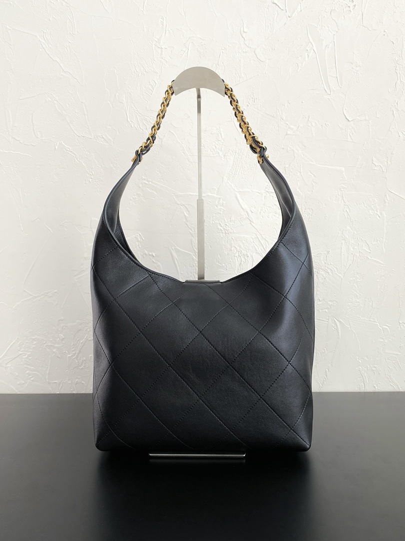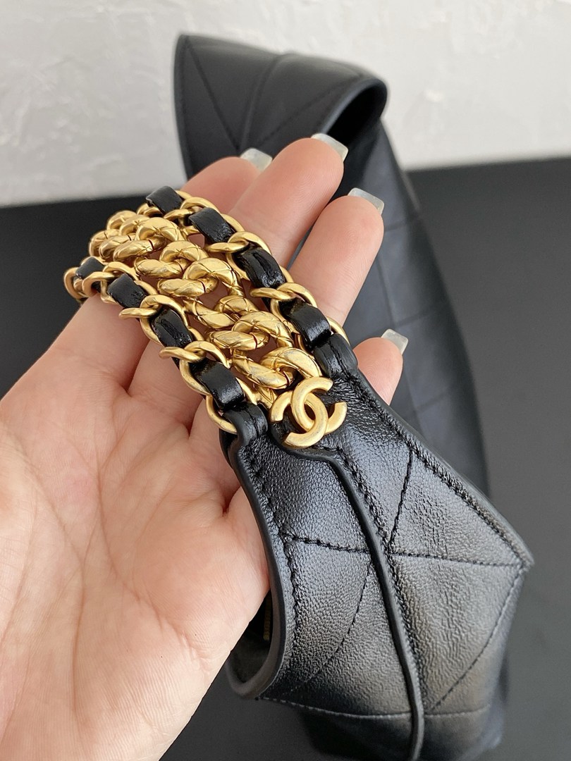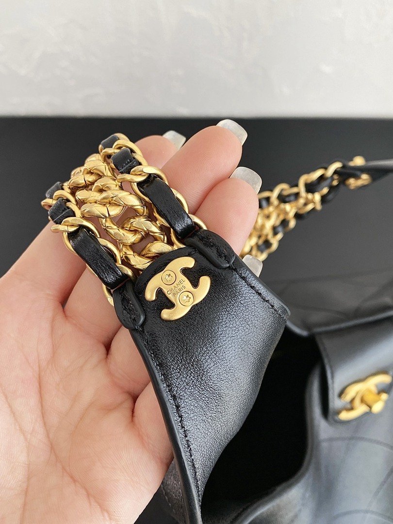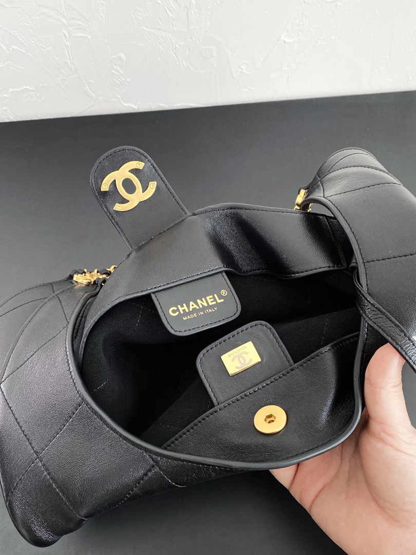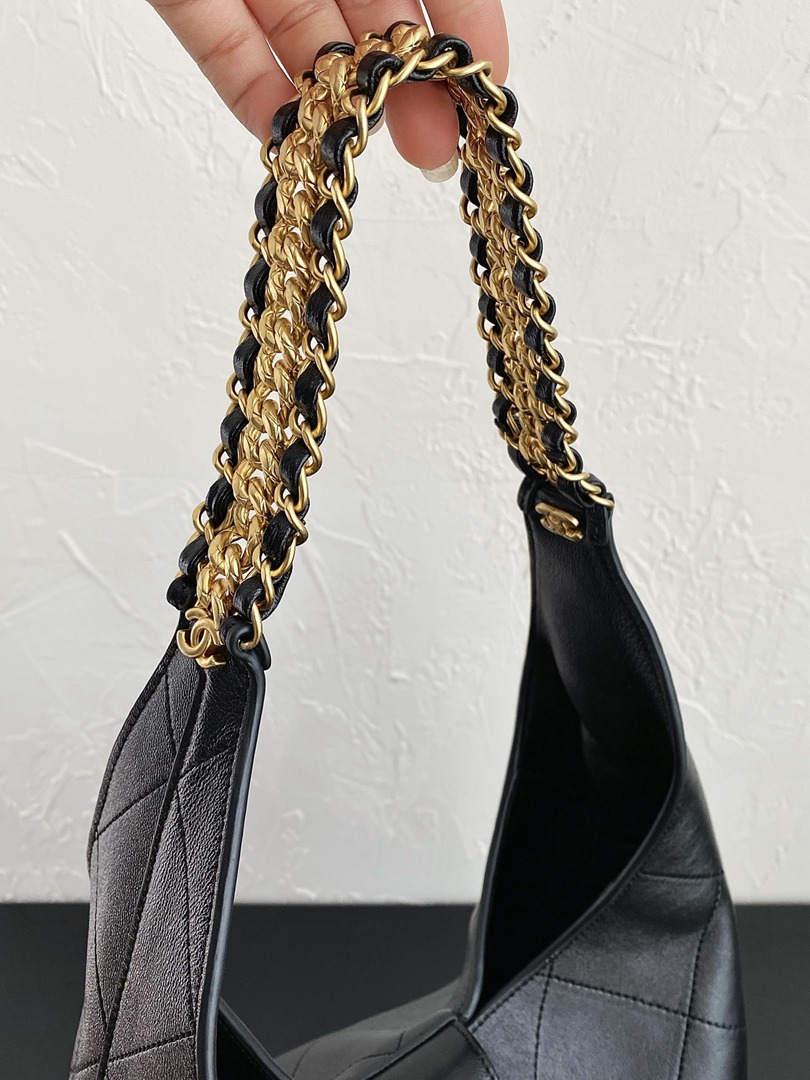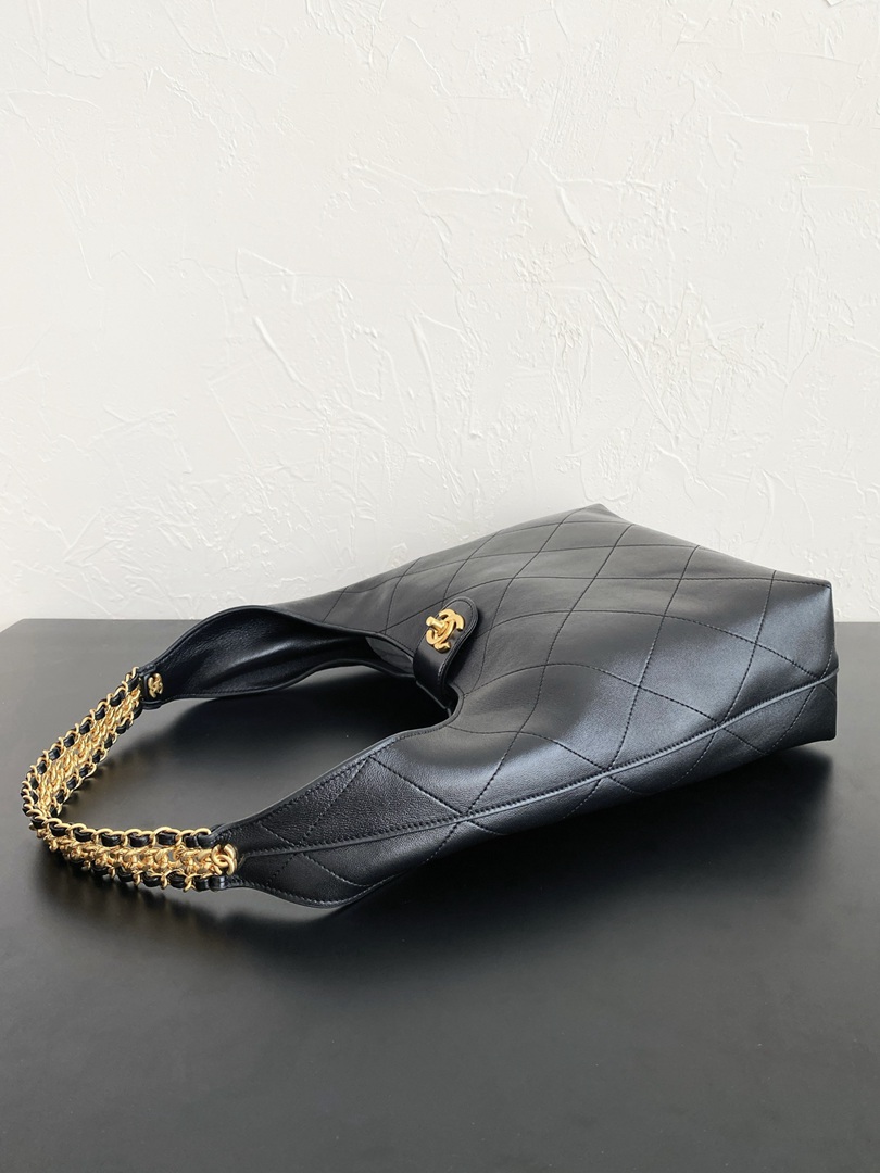 chanel 25p hobo bag black shiny lambskin gold hardware large