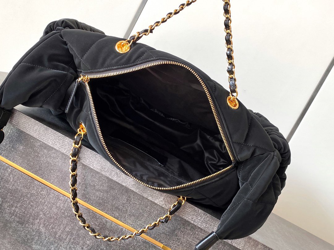 chanel 24n coconeige hobo bag black Nylon quilted gold hardware