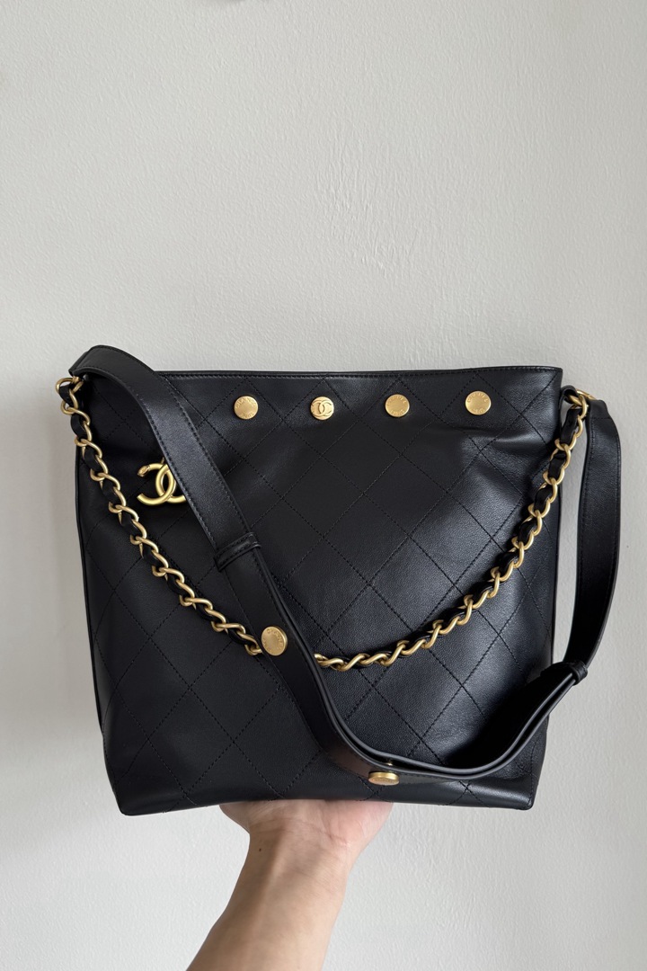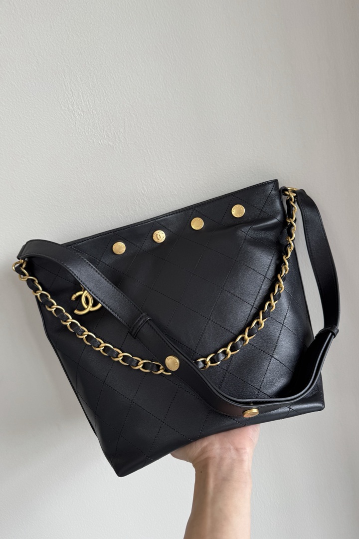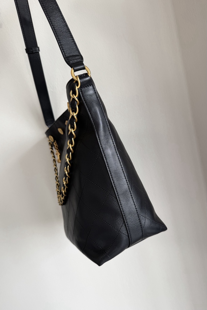 chanel Gold Coin hobo bag black shiny lambskin gold hardware