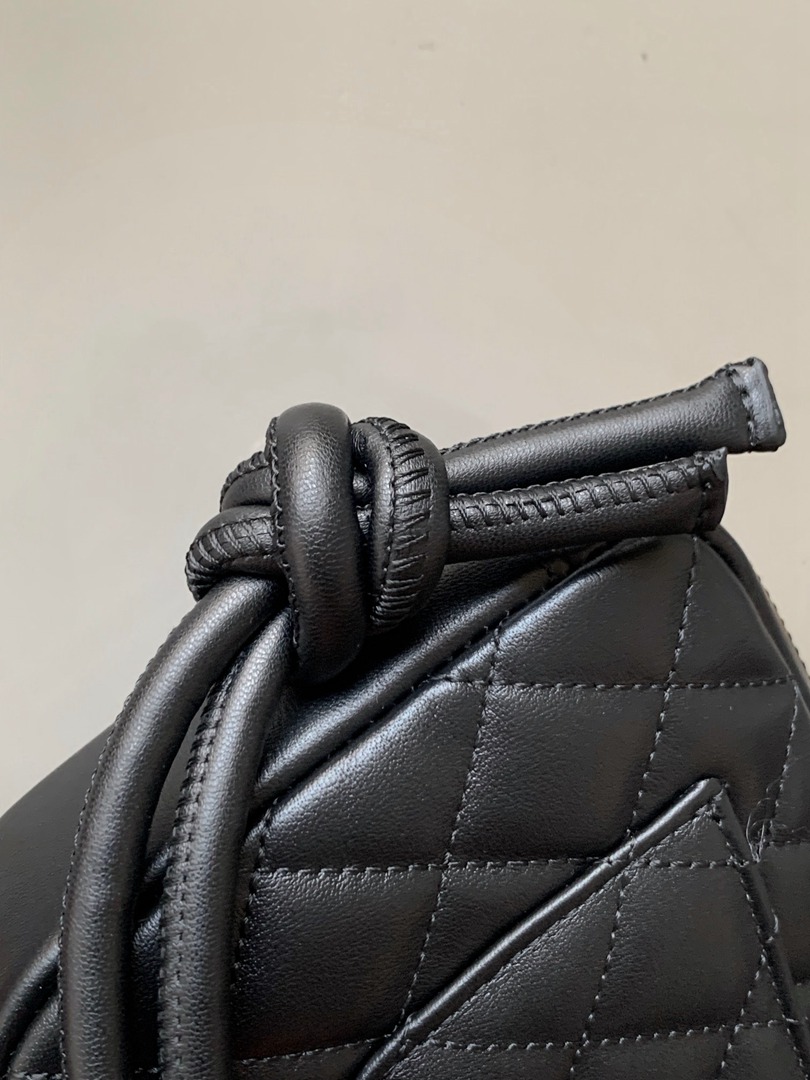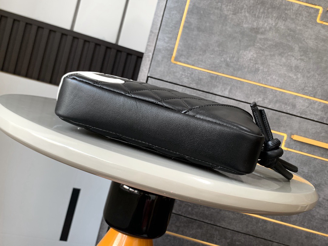 chanel Cambon hobo Underarm Bag black&white cc shiny lambskin sliver hardware