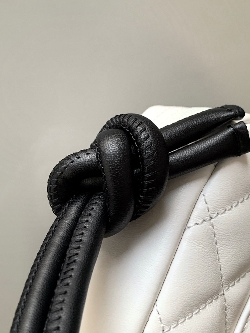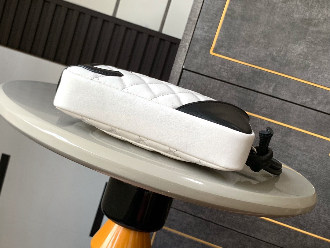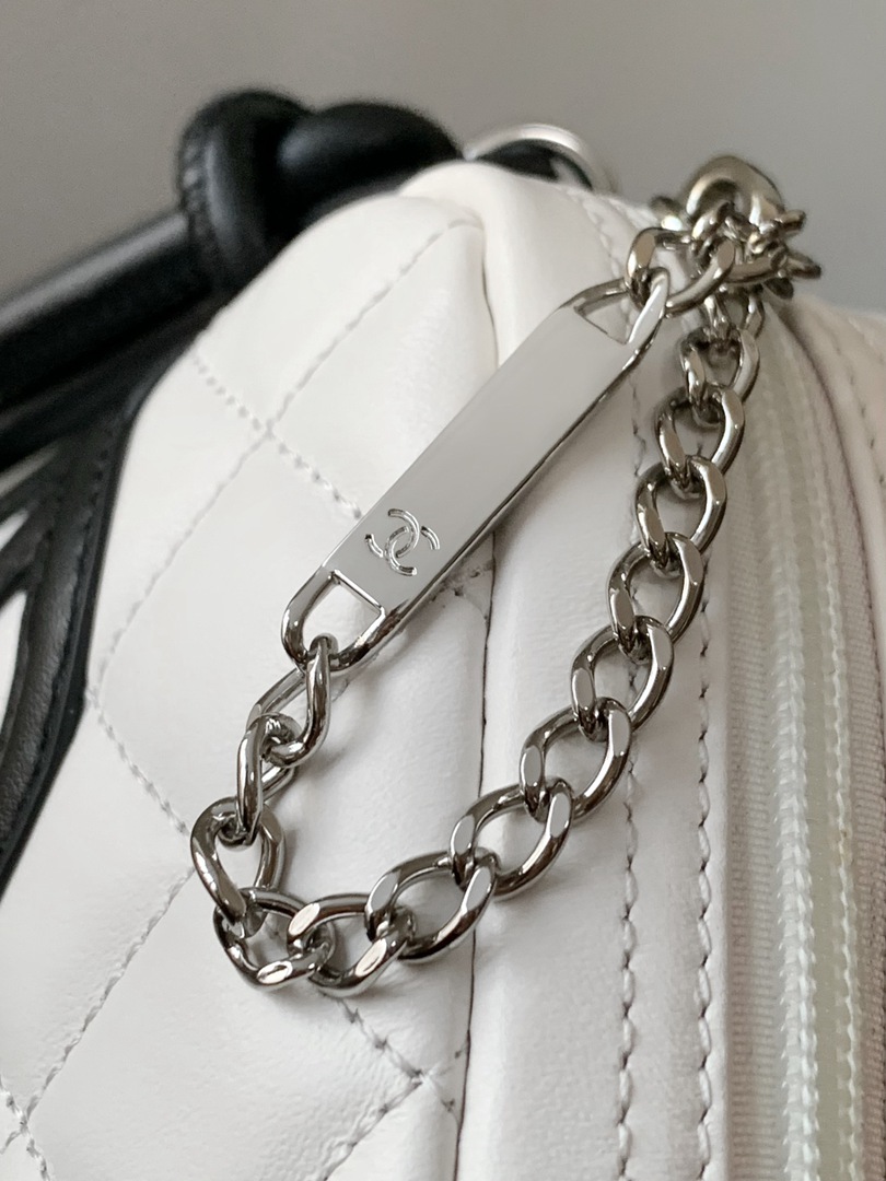 chanel Cambon hobo Underarm Bag white&black cc shiny lambskin sliver hardware