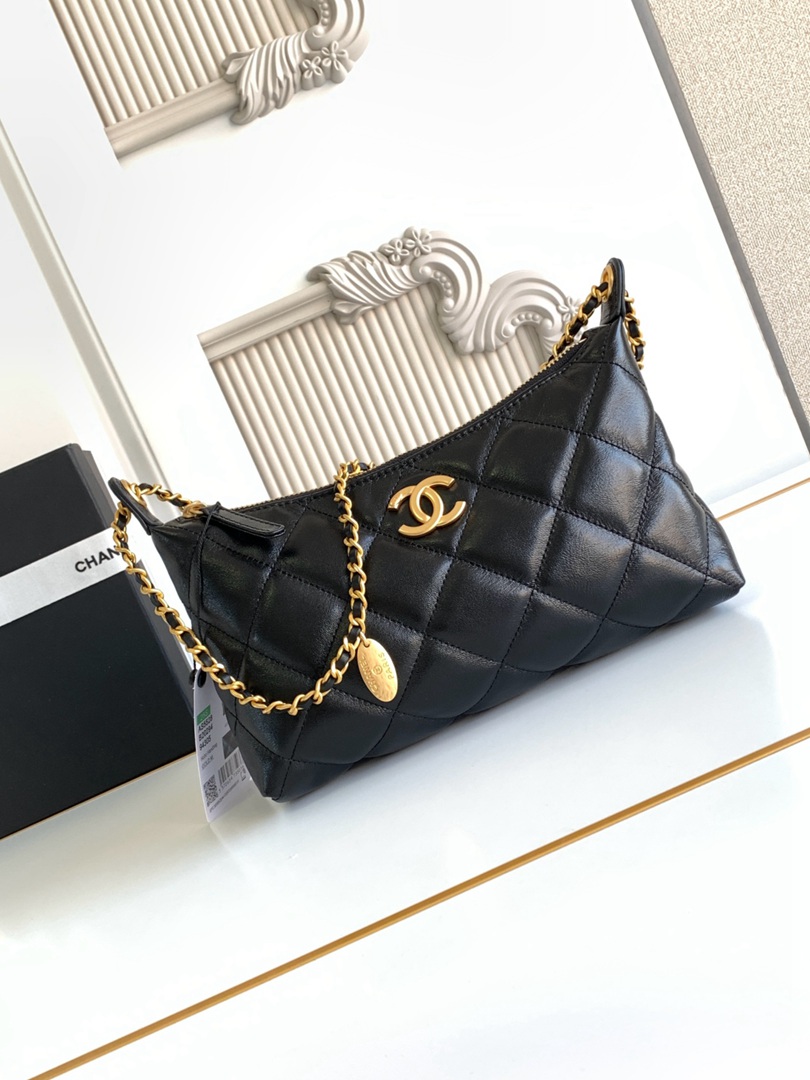chanel 25s hobo Dumplings bag black shiny calfskin gold hardware