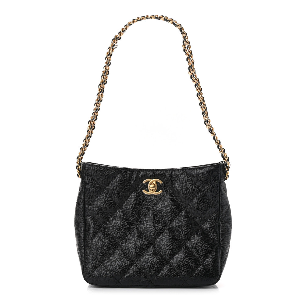 CHANEL Caviar Quilted Small Pick Me Up Hobo Black