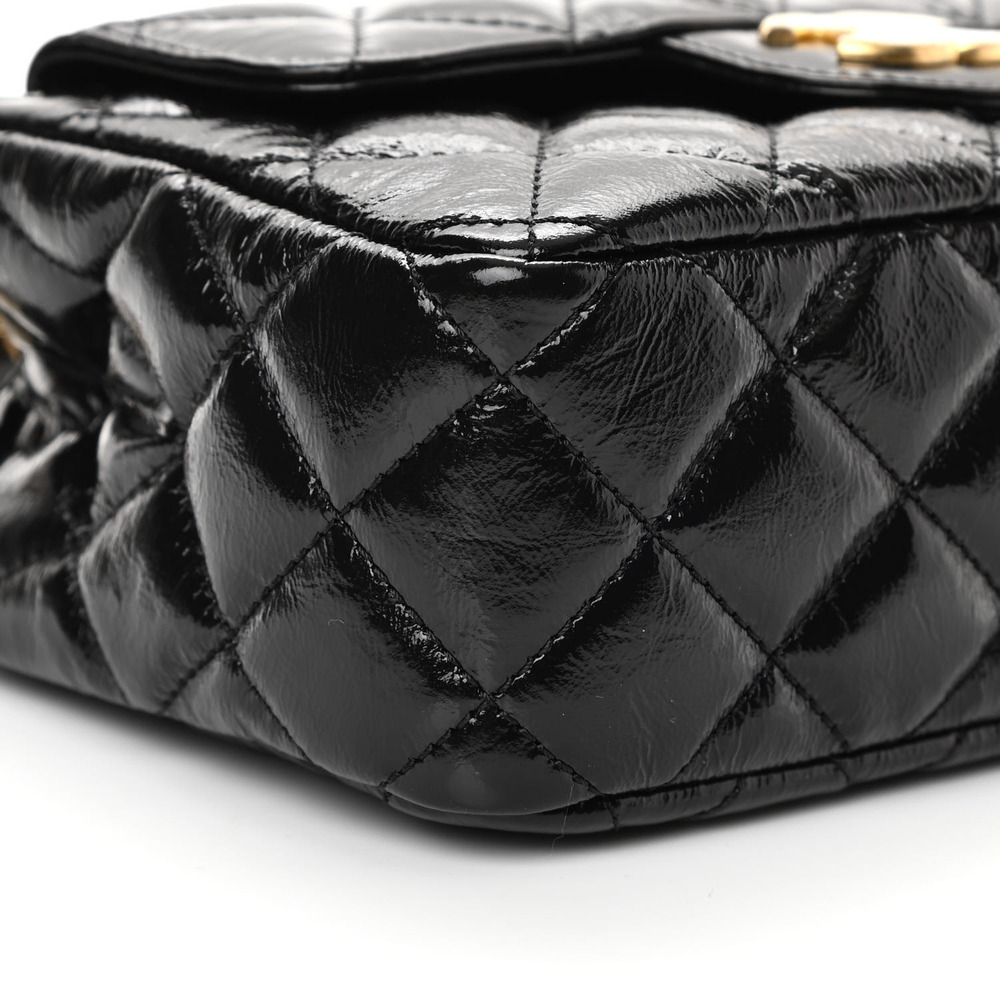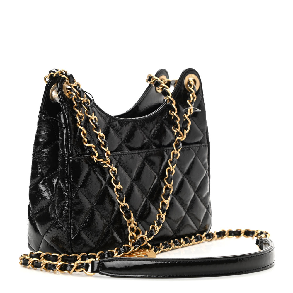 CHANEL Shiny Crumpled Calfskin Quilted Small Wavy CC Hobo Black