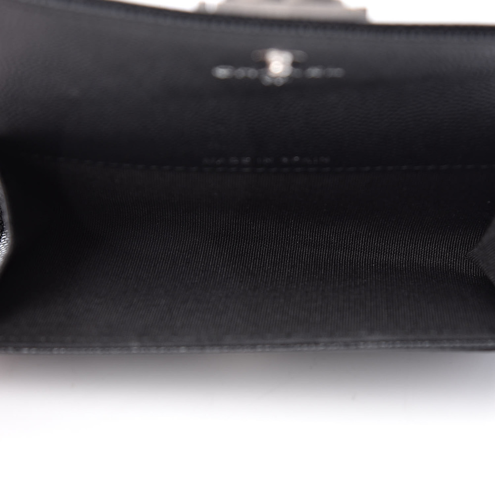 This stylish wallet is crafted of beautifully diamond quilted grained calfskin caviar leather in red with a periphery quilt. The wallet has a facing aged gold Chanel CC press lock, the 3/4 wrap around zipper opens to a compact interior of card slot panels with three compartments.