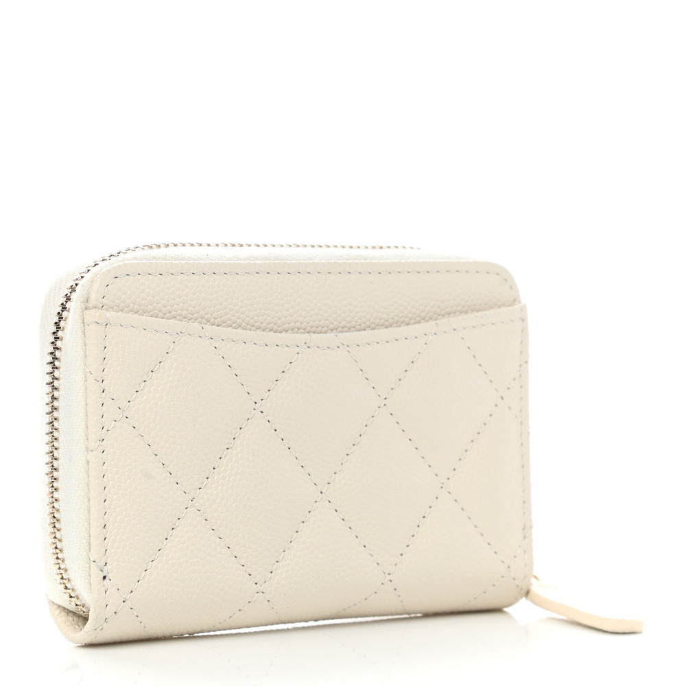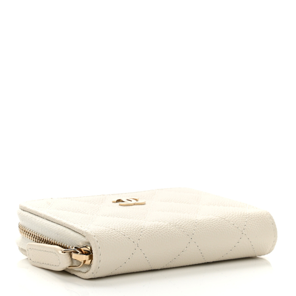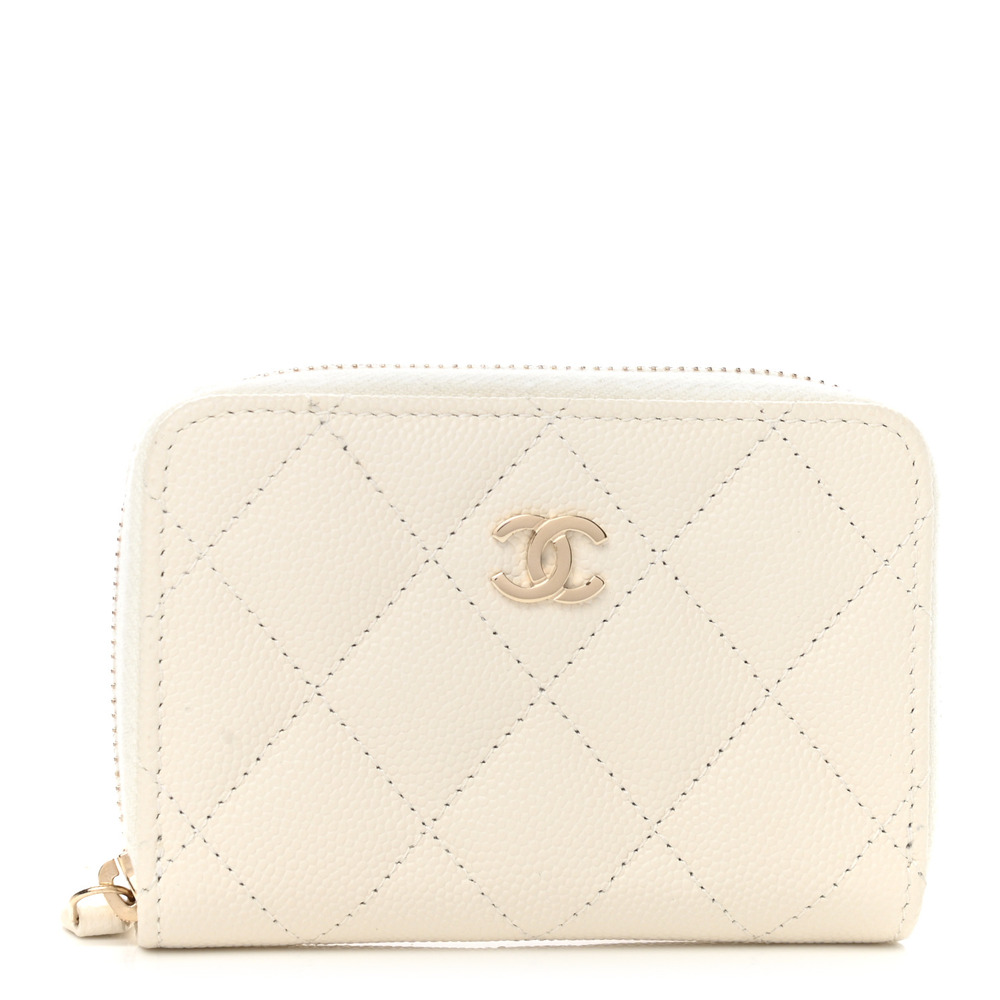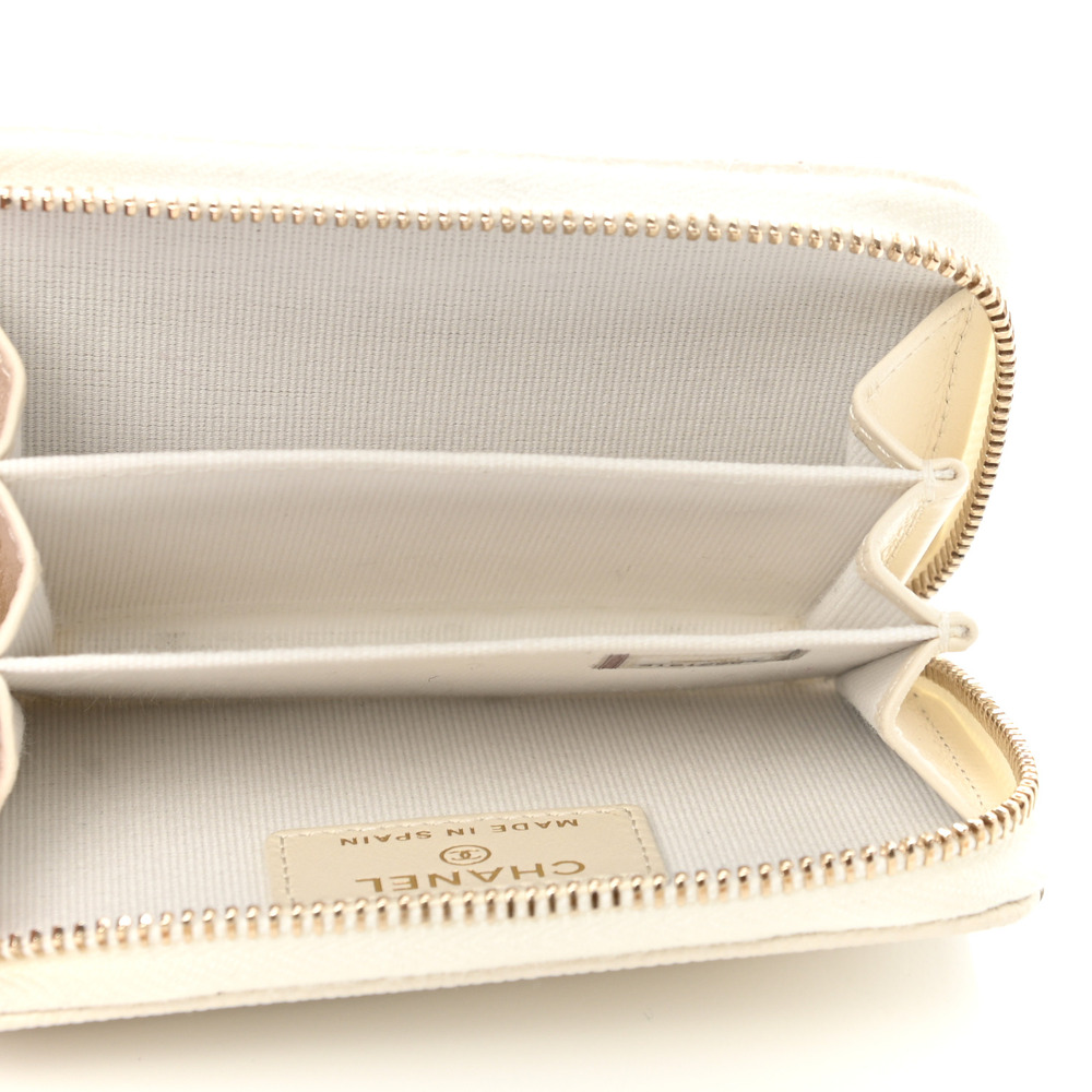Crafted from pink caviar leather, this petite wallet exudes charm and elegance. The round coin purse design features a wrap-around zipper for secure closure and convenience. Adorning the front is a gold CC logo, adding a touch of sophistication. Opening the zipper reveals a matching pink fabric interior, providing a stylish backdrop for your essentials.