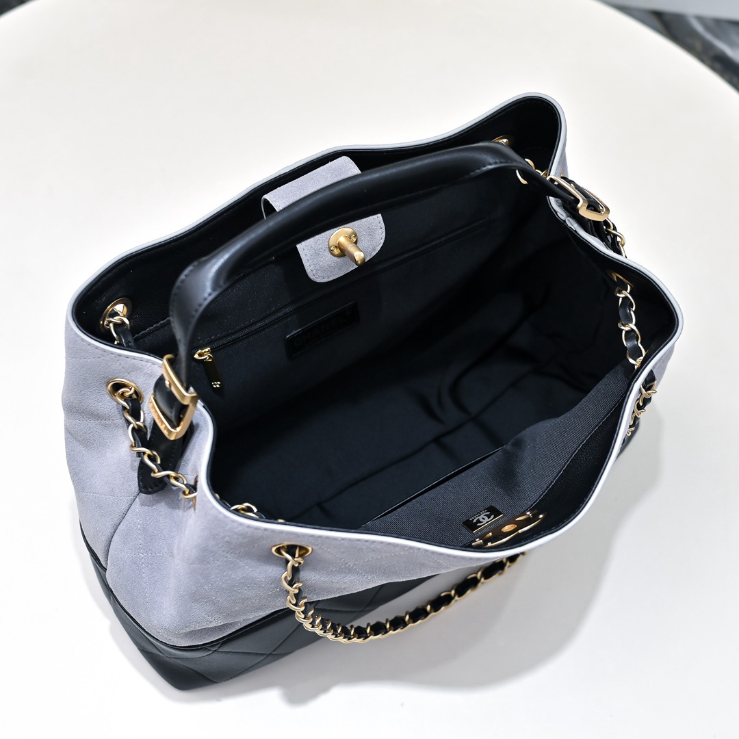 chanel 25a tote bag light purple&black Suede calfskin&shiny lambskin gold hardware