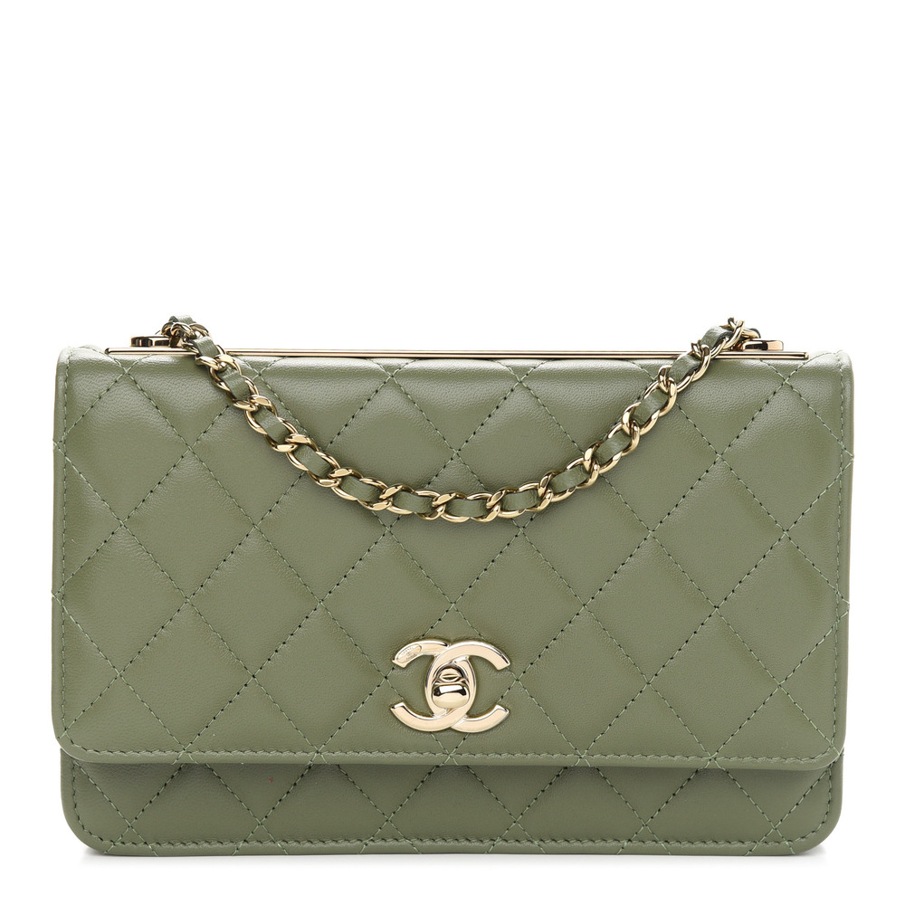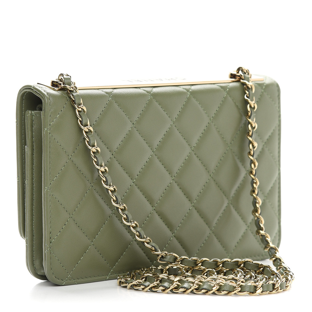 CHANEL Lambskin Quilted Trendy CC Wallet On Chain WOC Green