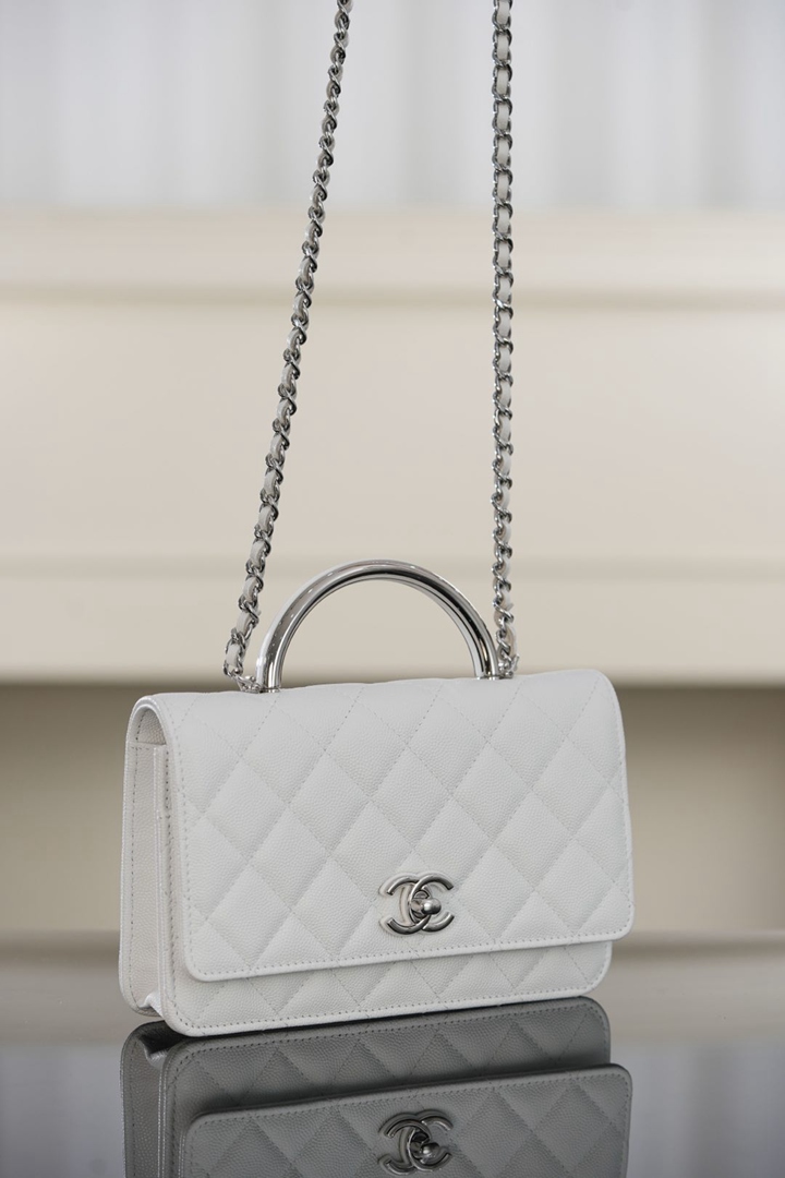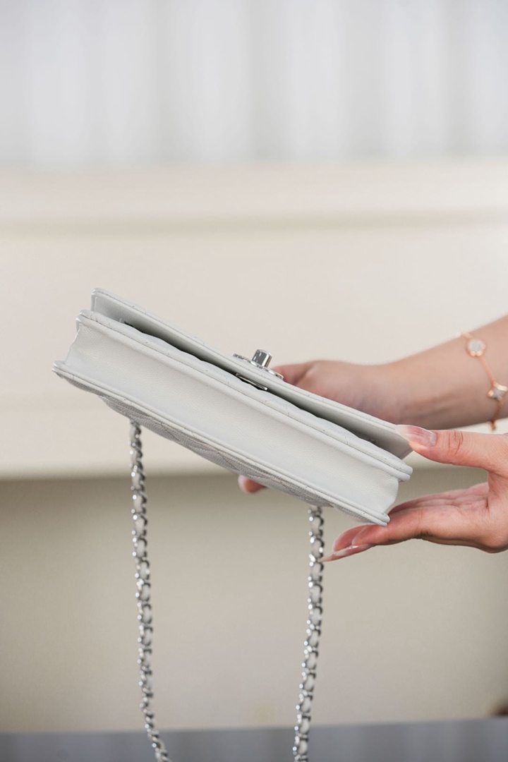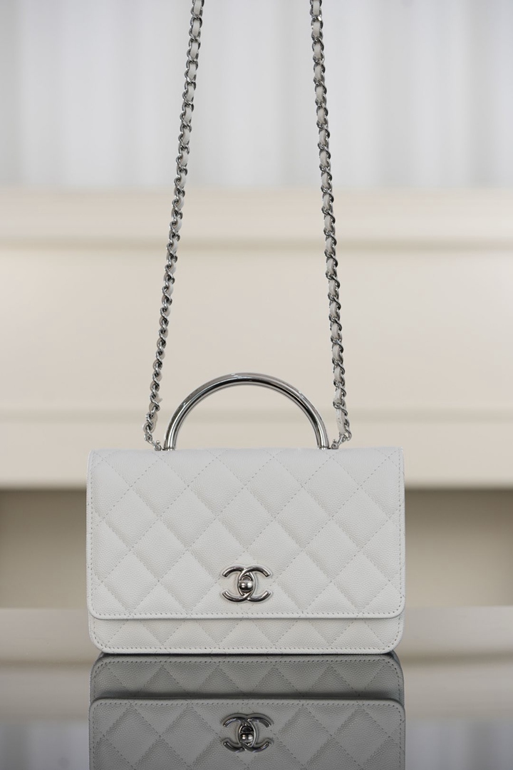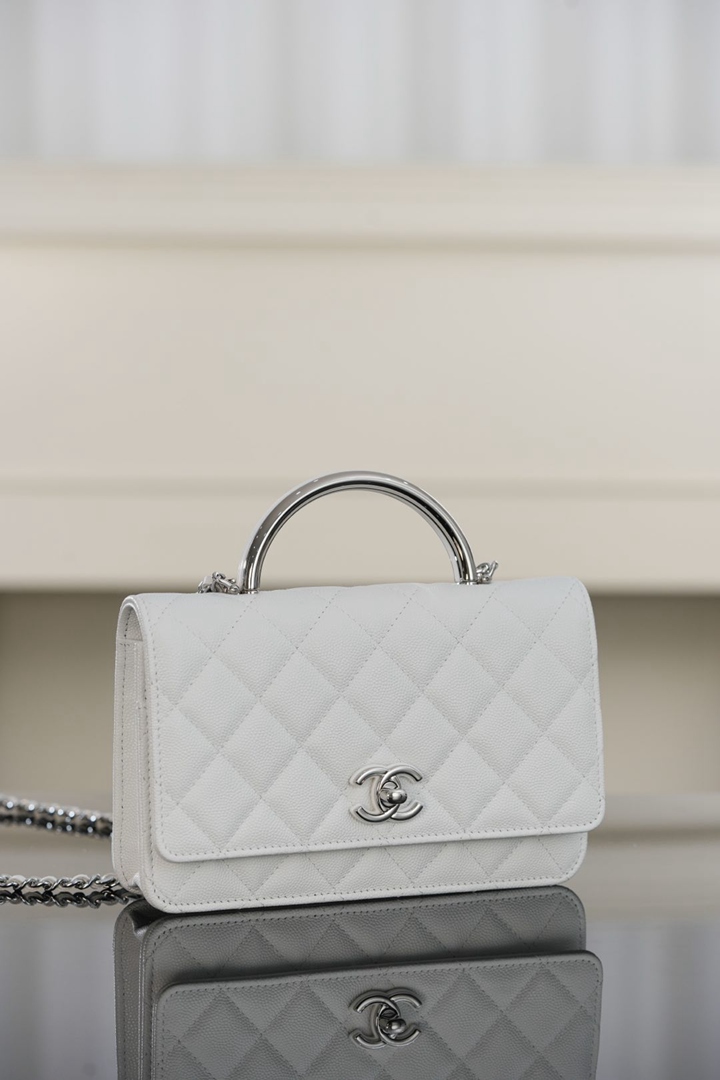 chanel 25p handle woc white Grained Calfskin?sliver hardware