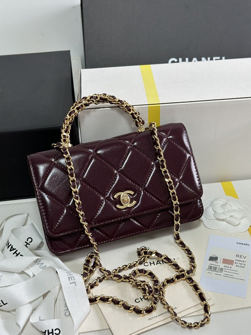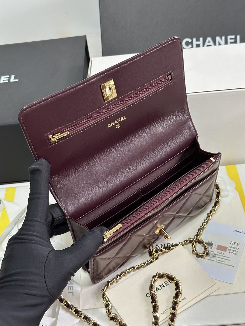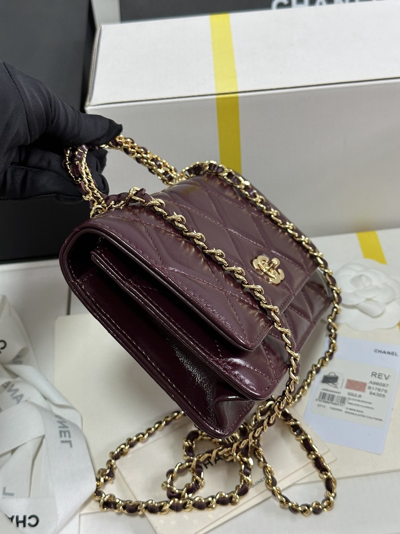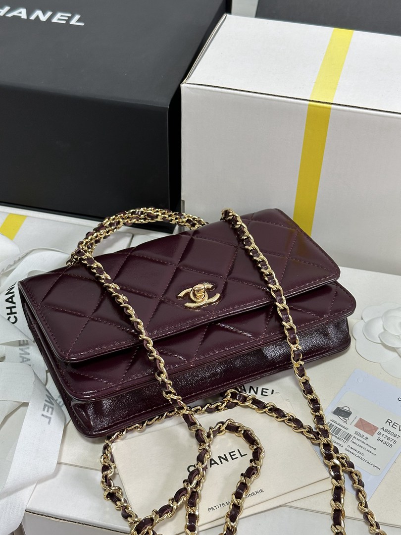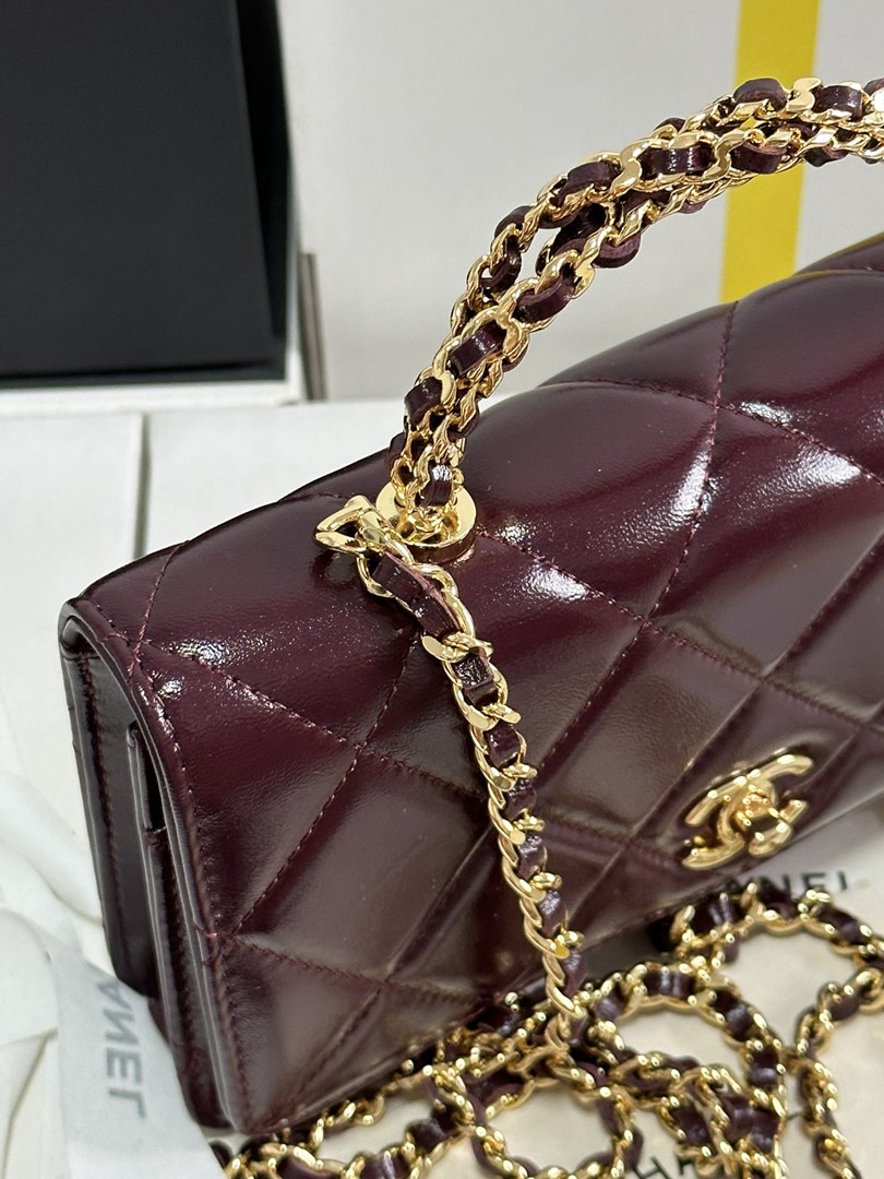 chanel 24b twist handle woc Burgundy shiny lambskin gold hardware