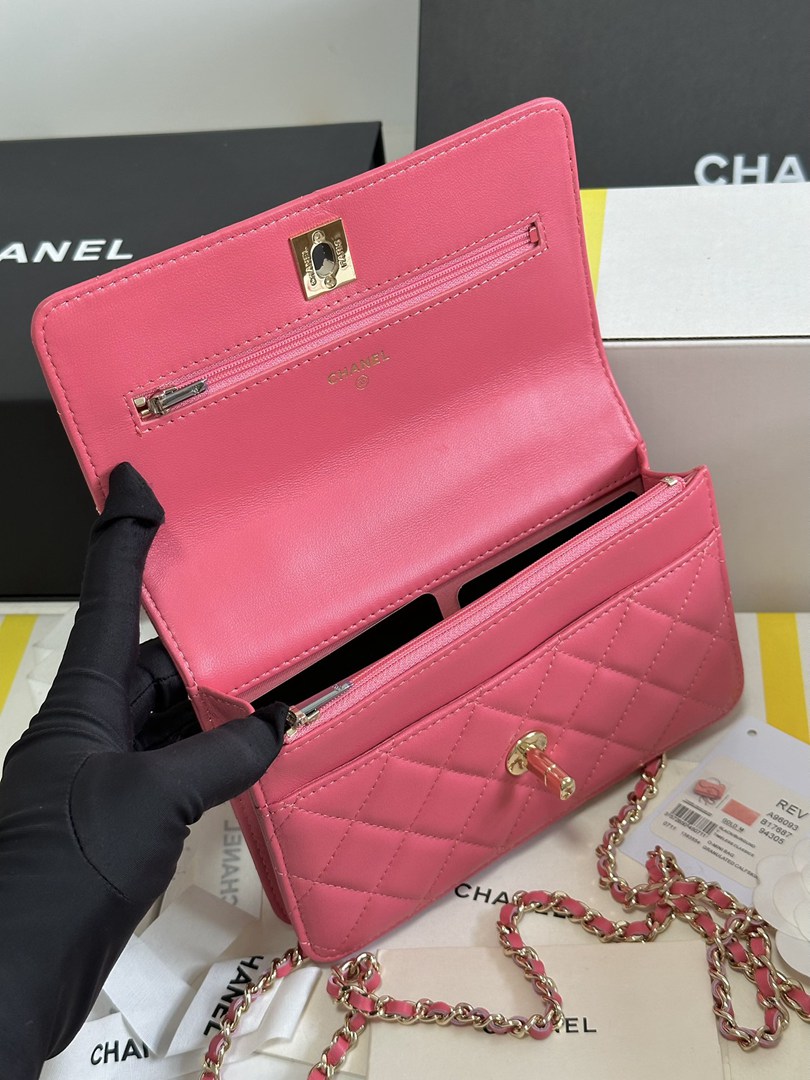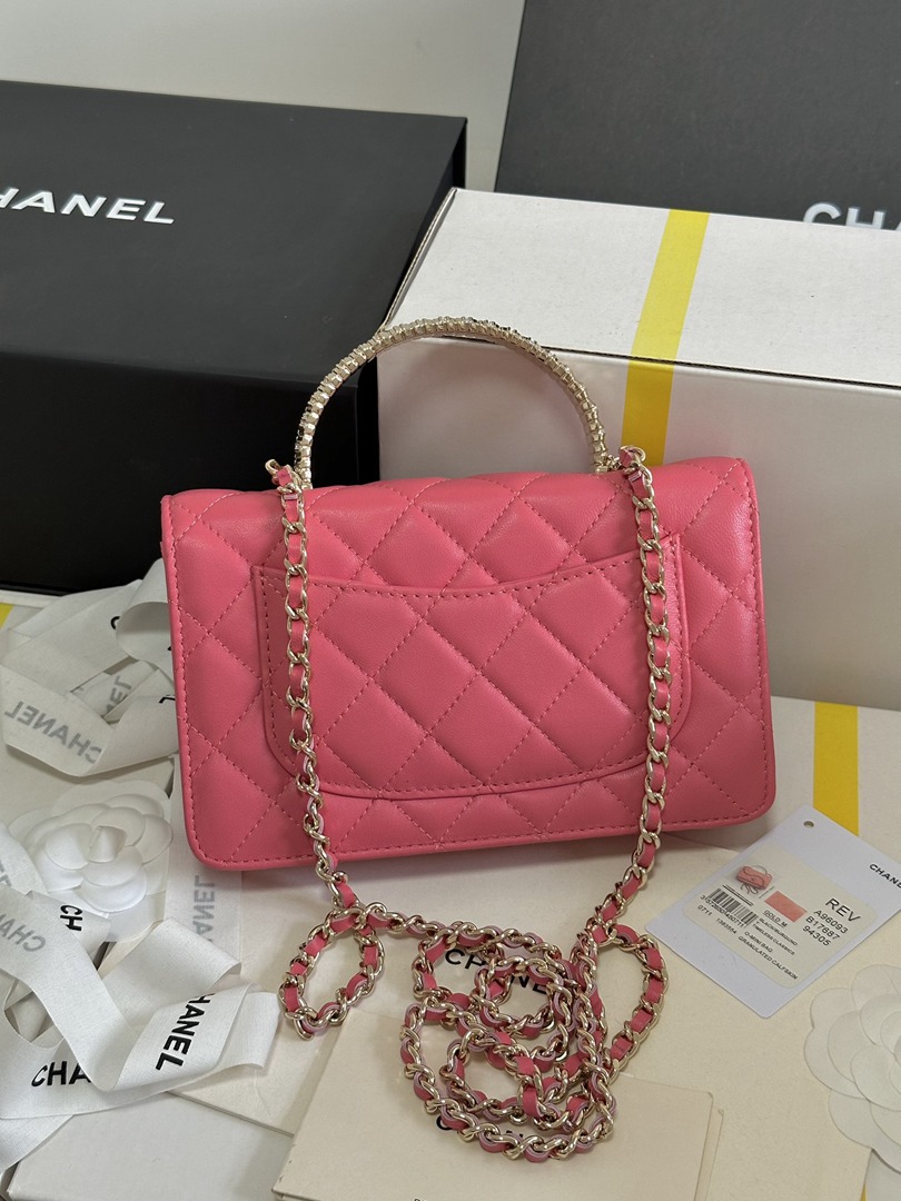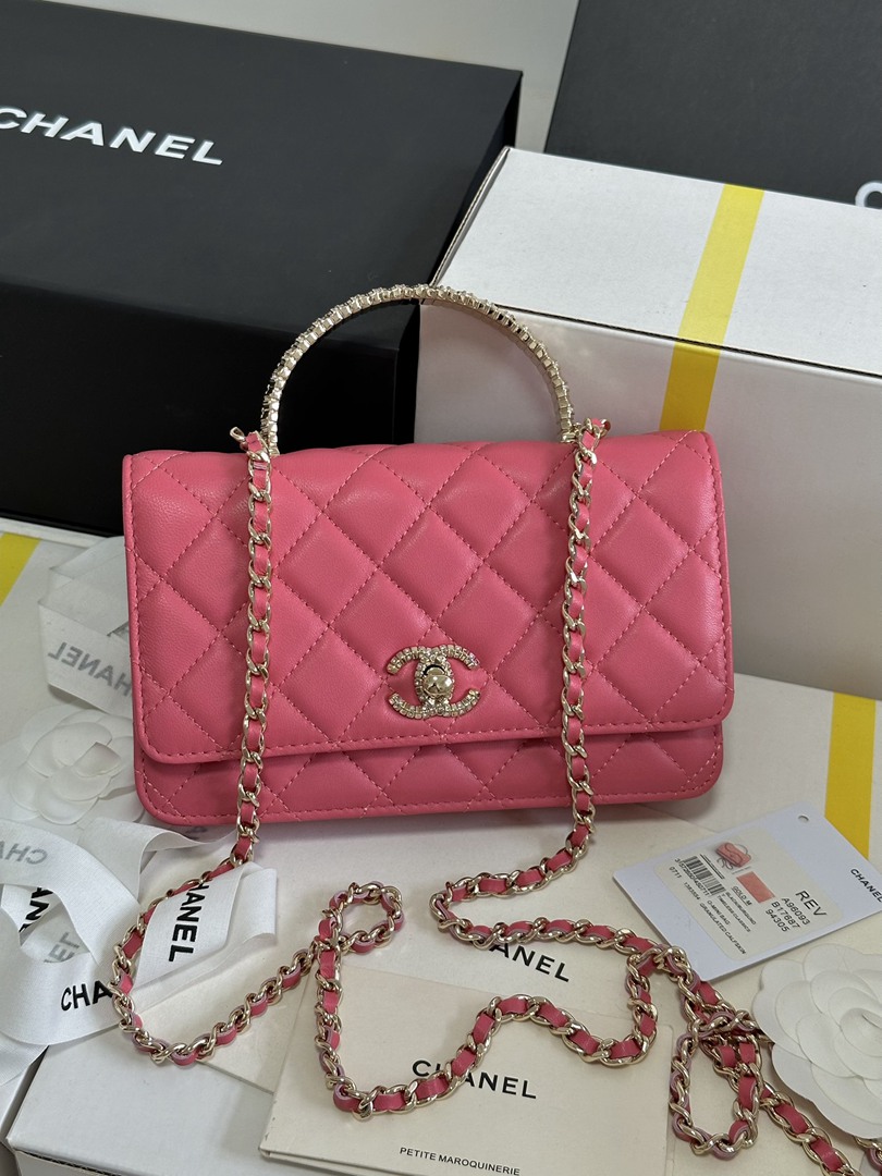 chanel 24b rhinestone handle woc Rose red shiny lambskin gold hardware