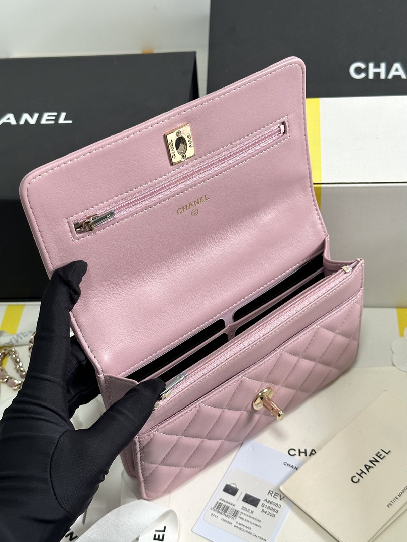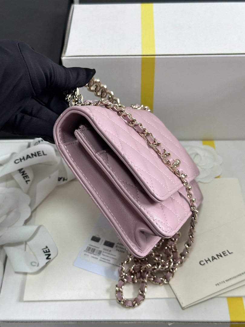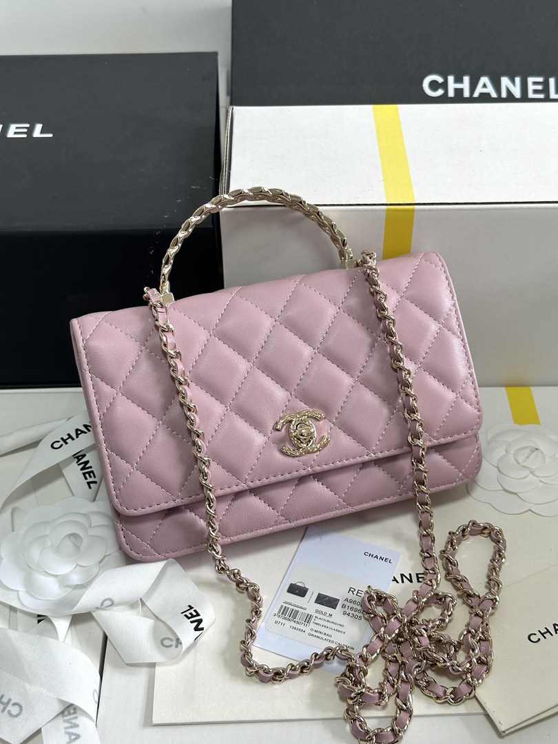 chanel 24a rhinestone handle woc pink shiny lambskin gold hardware