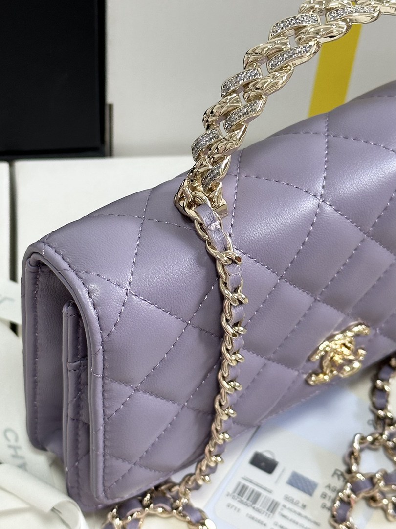 chanel 24a rhinestone handle woc purple shiny lambskin gold hardware