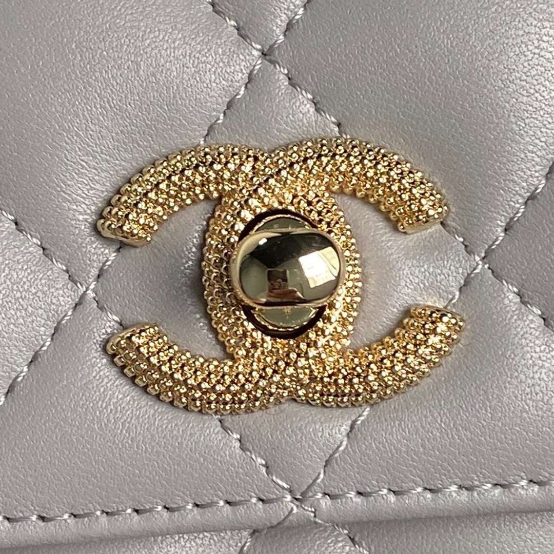 chanel 24k Embossed rhinestone chain woc white shiny lambskin gold hardware