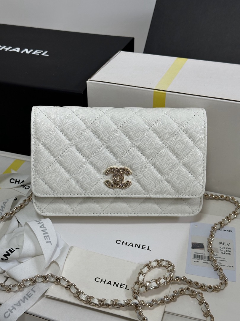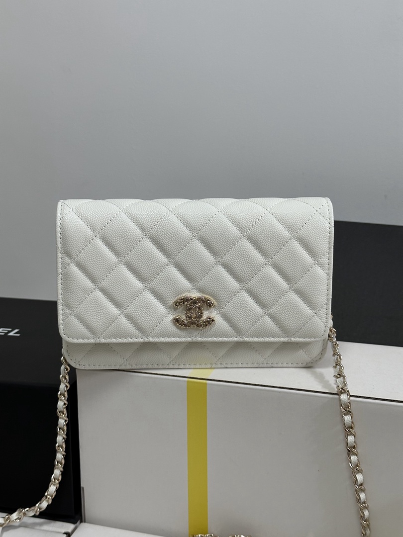chanel 25p Heart rhinestones woc white Caviar calfskin gold hardware