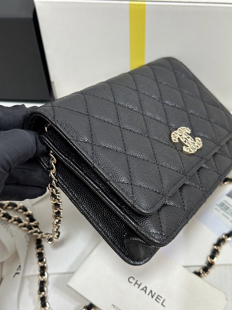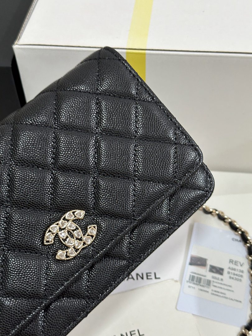 chanel 25p Heart rhinestones woc black Caviar calfskin gold hardware