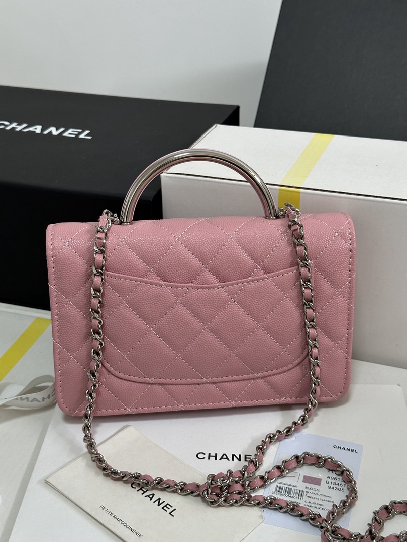 chanel 25p Enamel handle woc pink Caviar calfskin sliver hardware