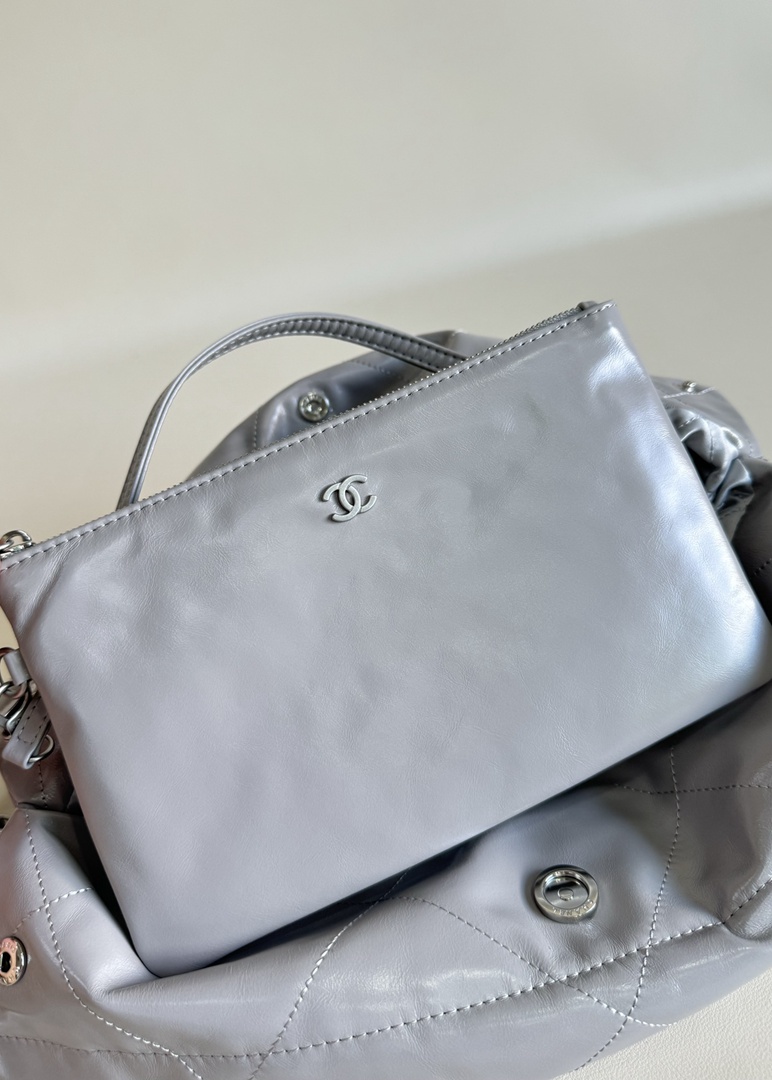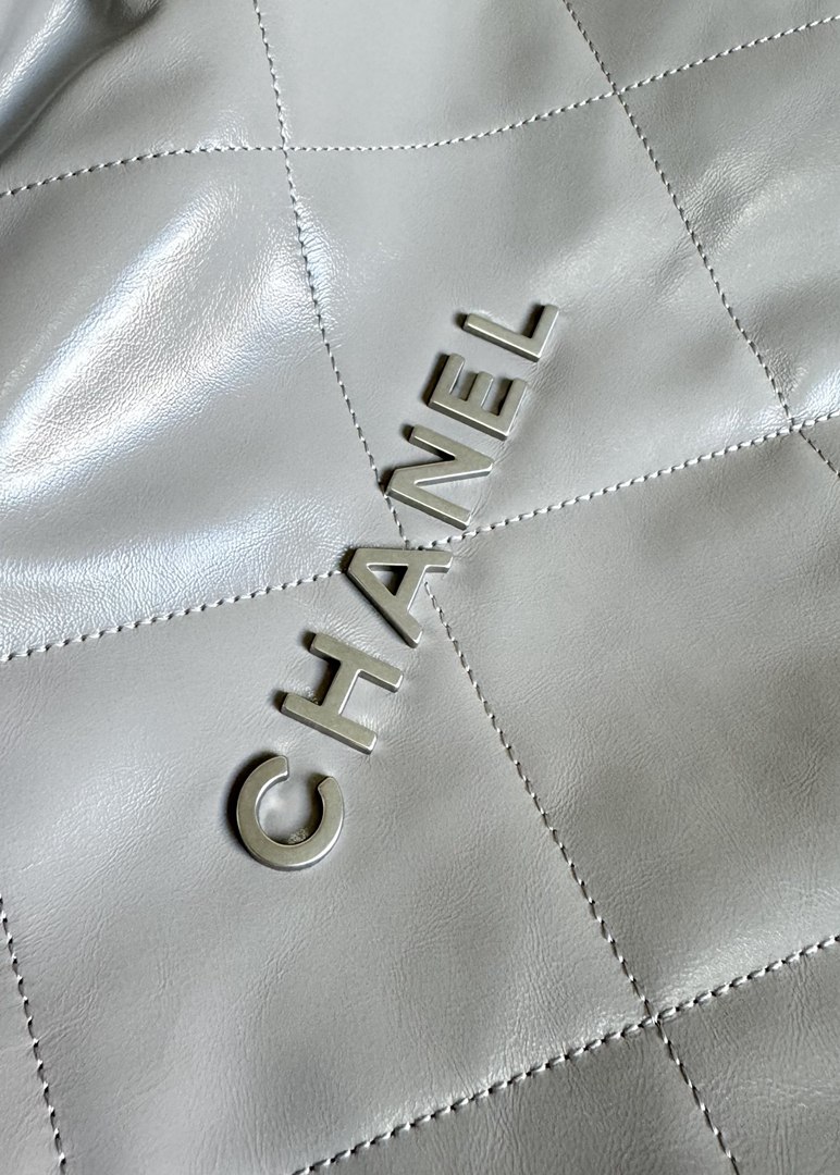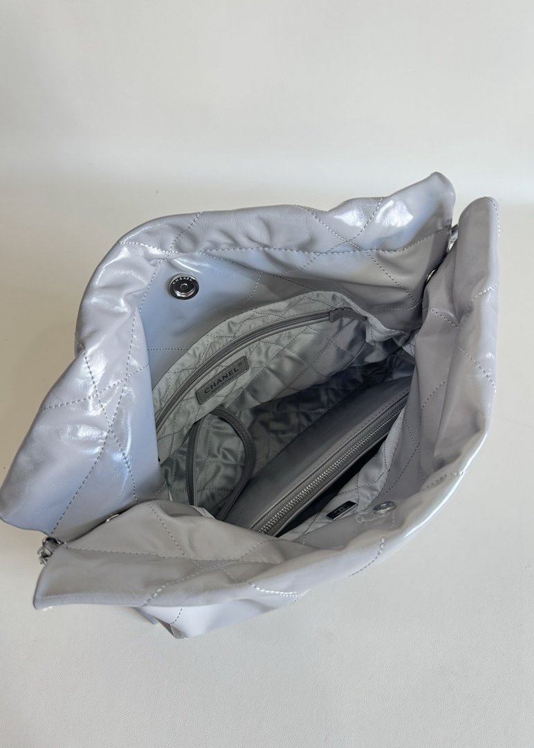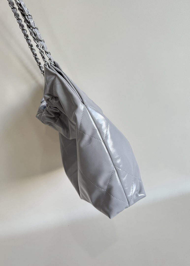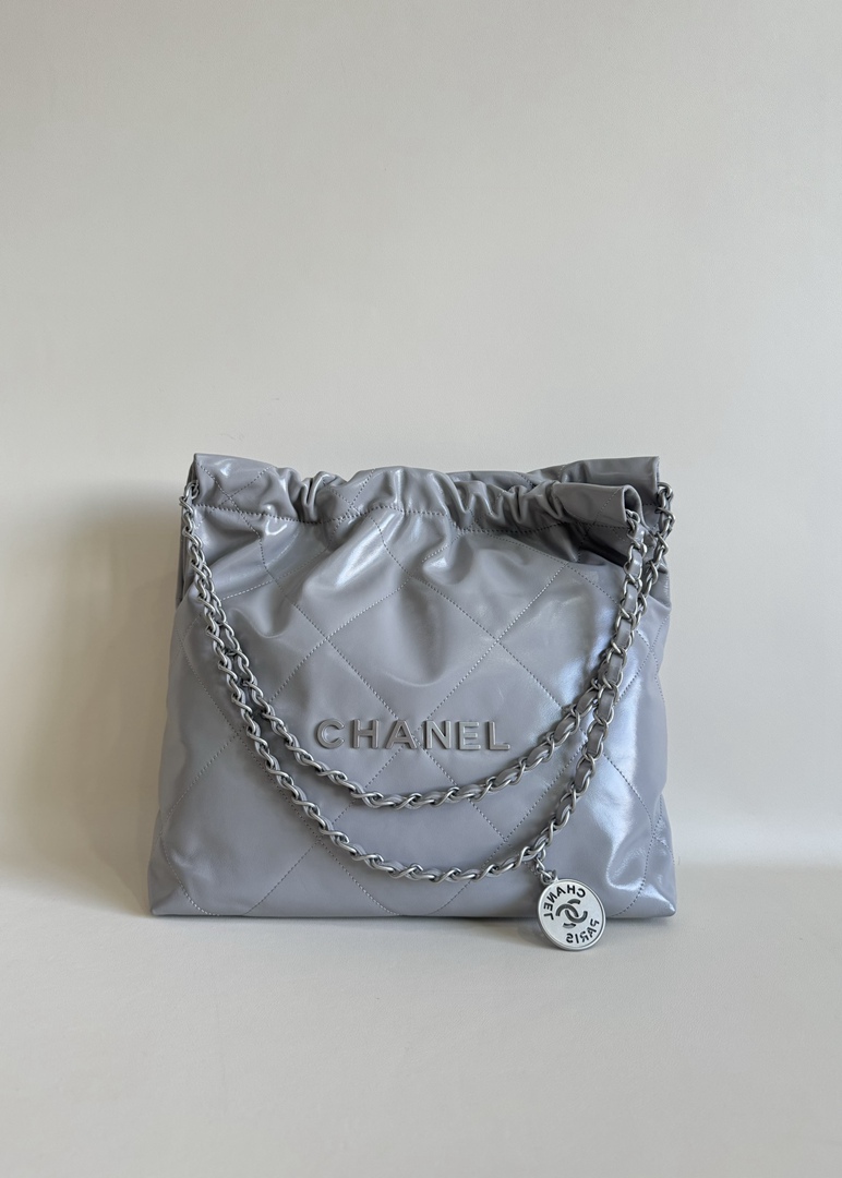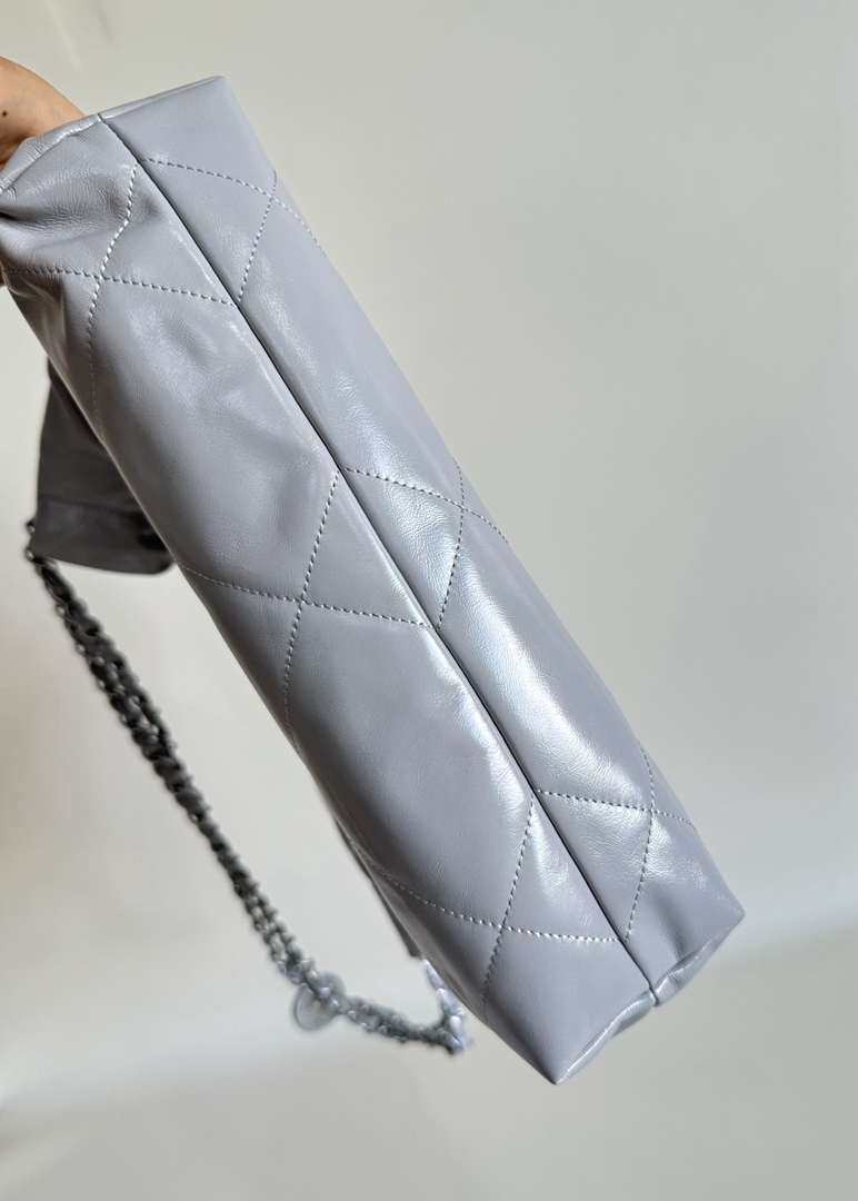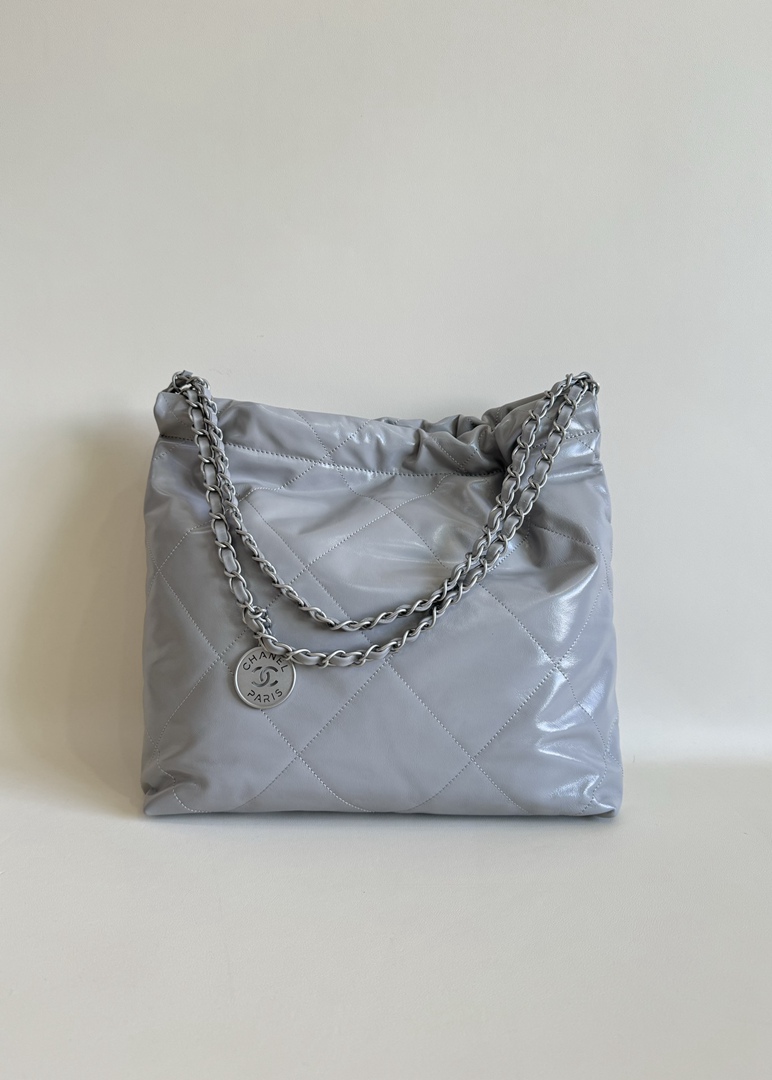chanel 22 bag grey shiny Calfskin sliver hardware small