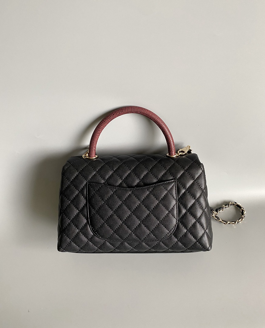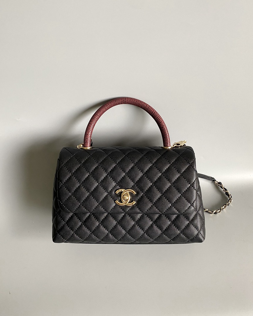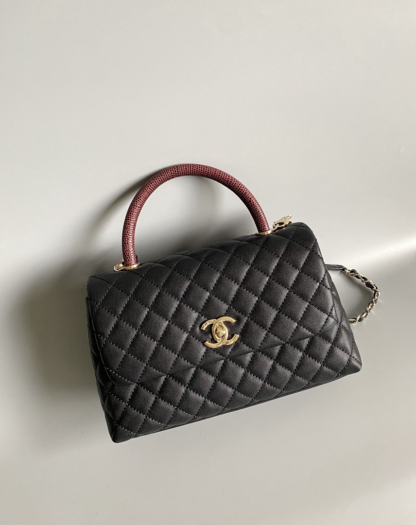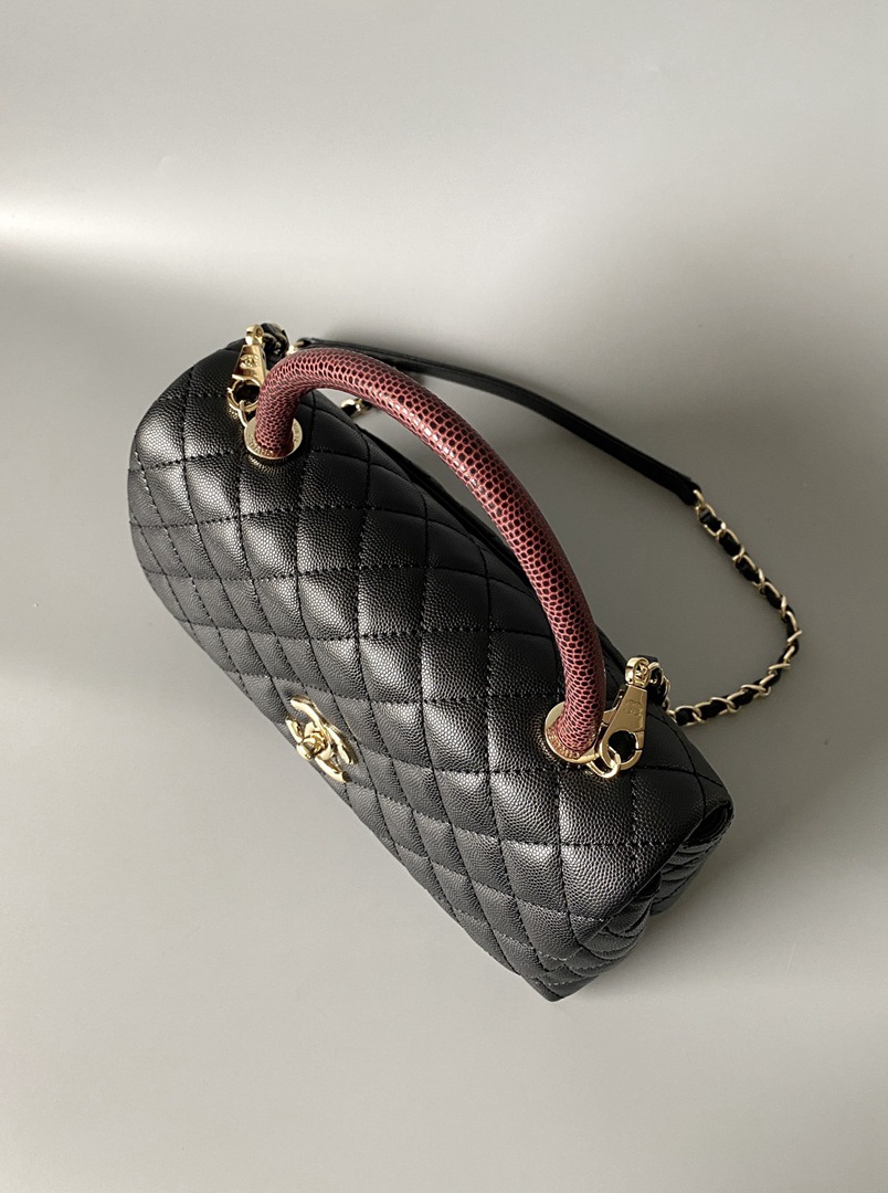 chanel coco handle red bag black grained calfskin gold hardware