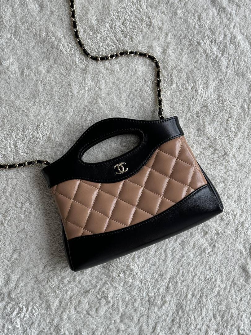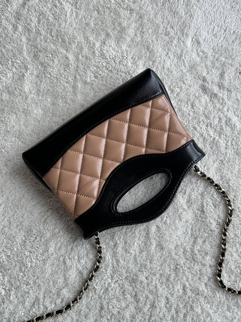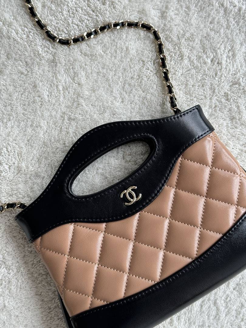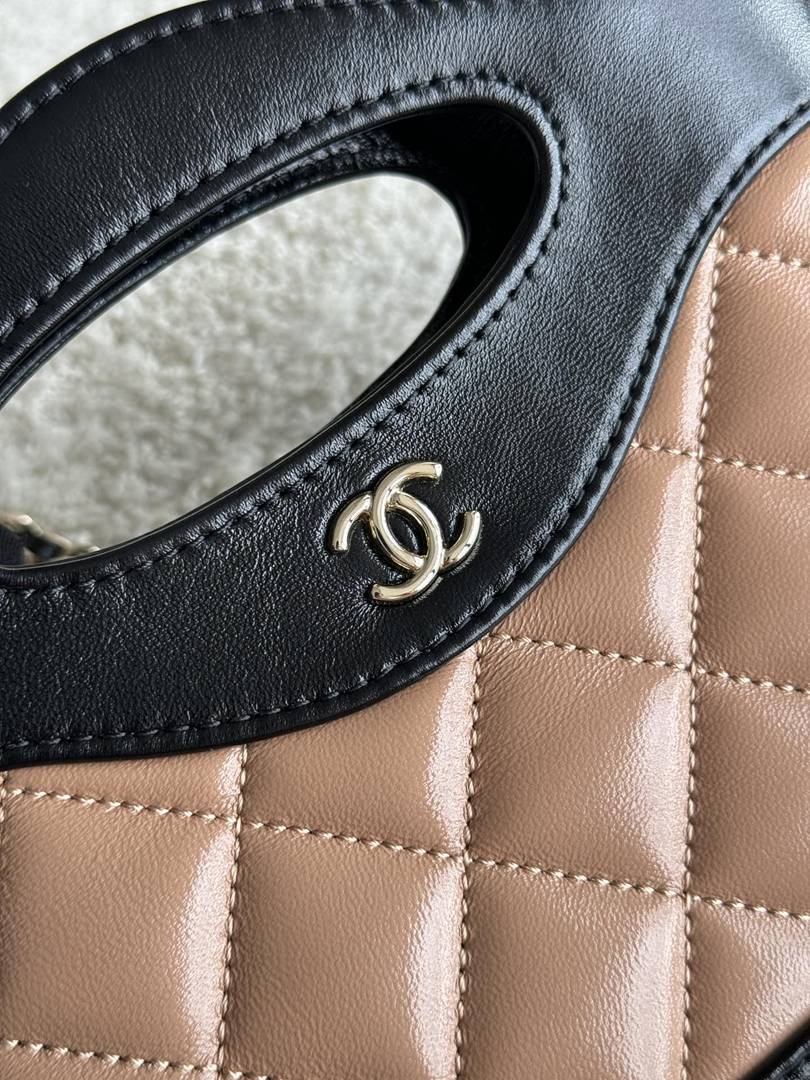 chanel 24s Nano 31bag apricot&black shiny calfskin gold hardware