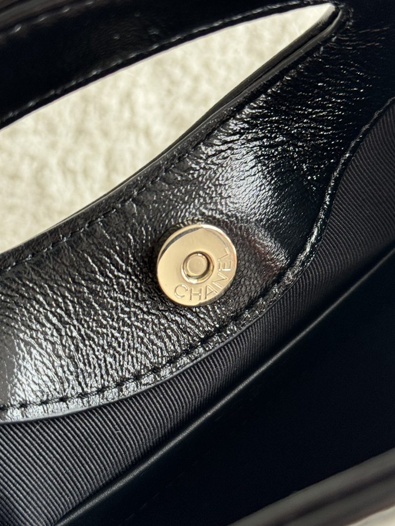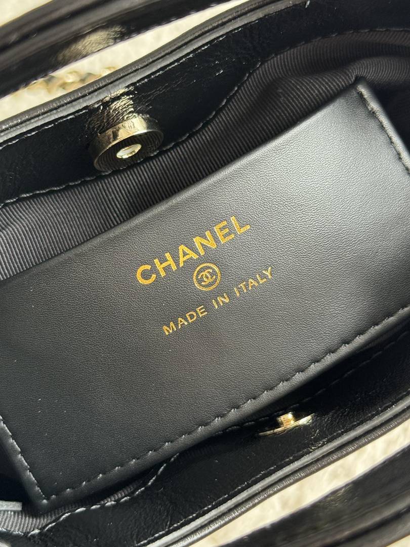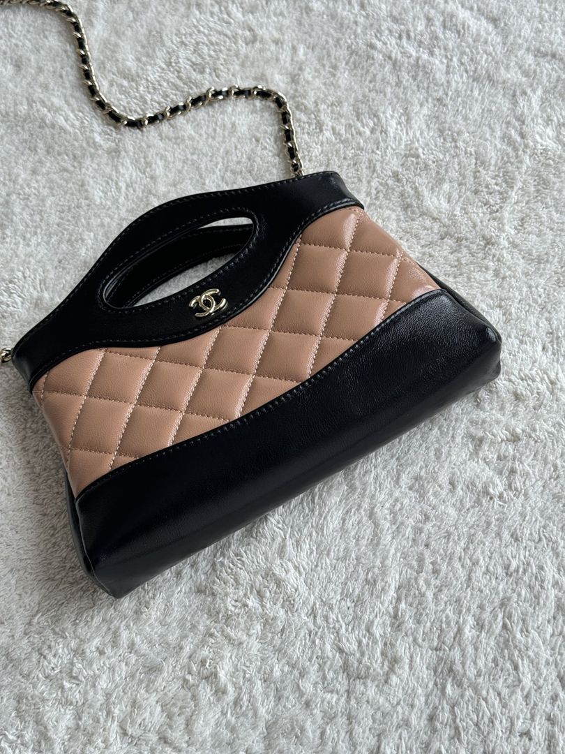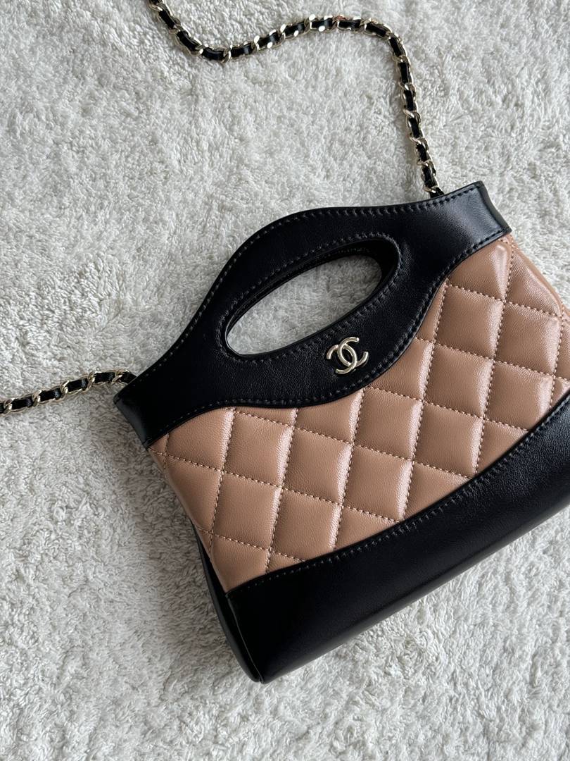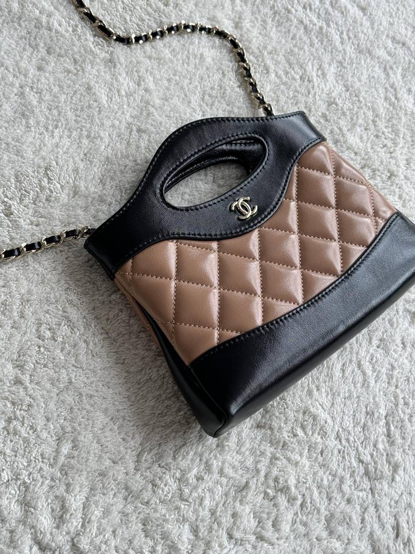 chanel 24s Nano 31bag apricot&black shiny calfskin gold hardware