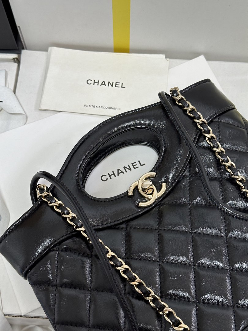 chanel 25p mini 31bag black shiny lambskin gold hardware
