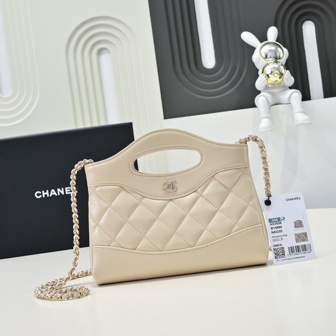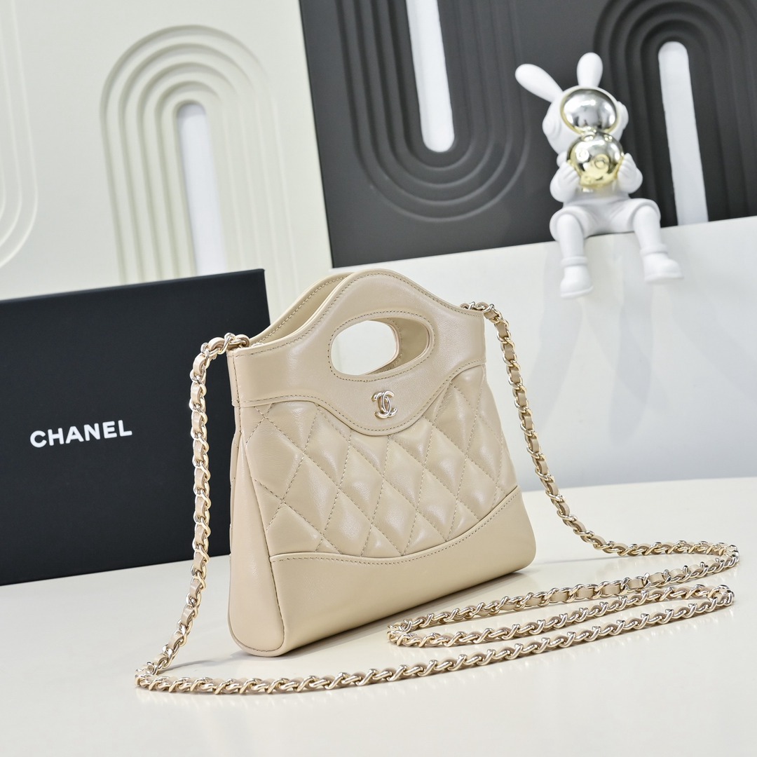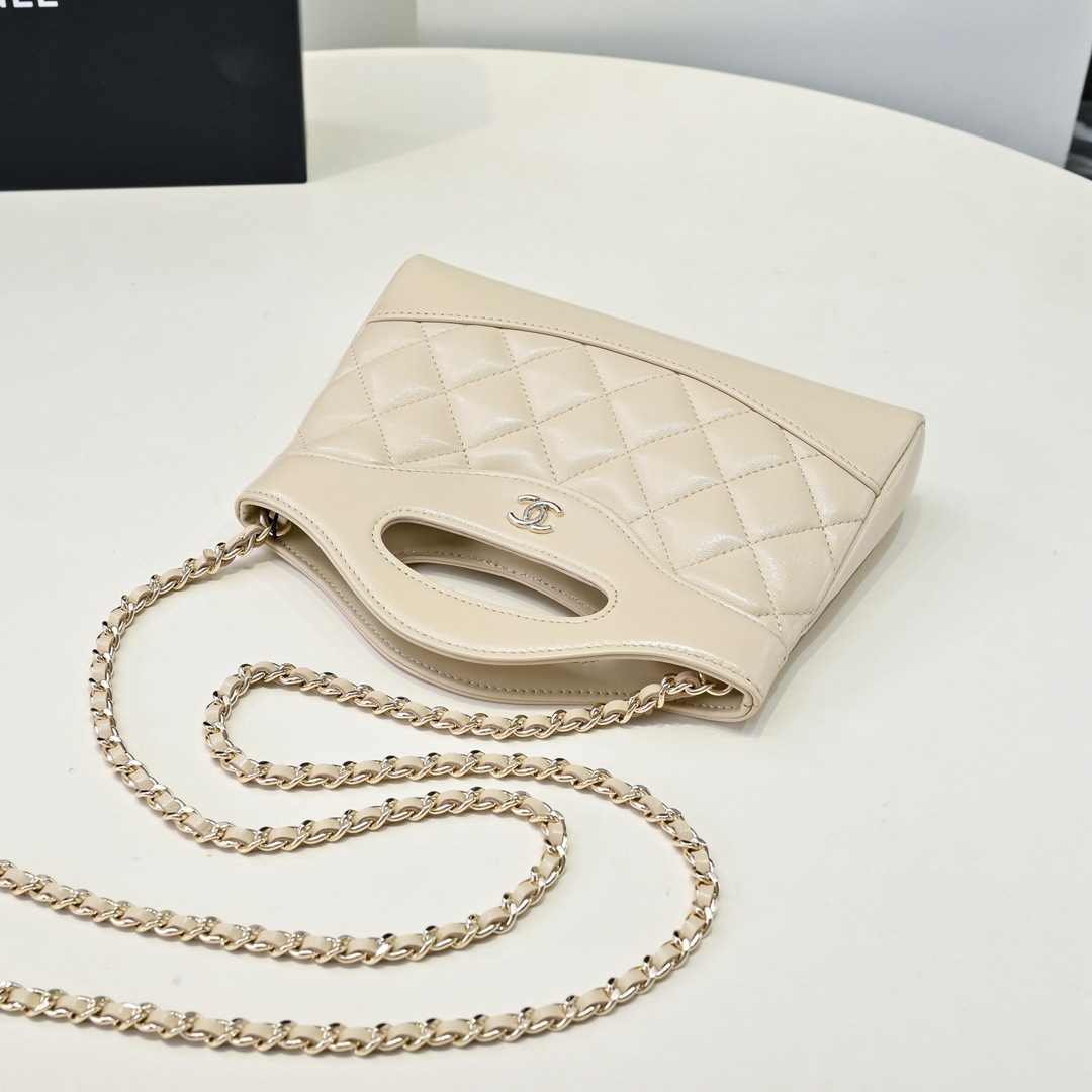 chanel nano 31bag light grey shiny lambskin sliver hardware