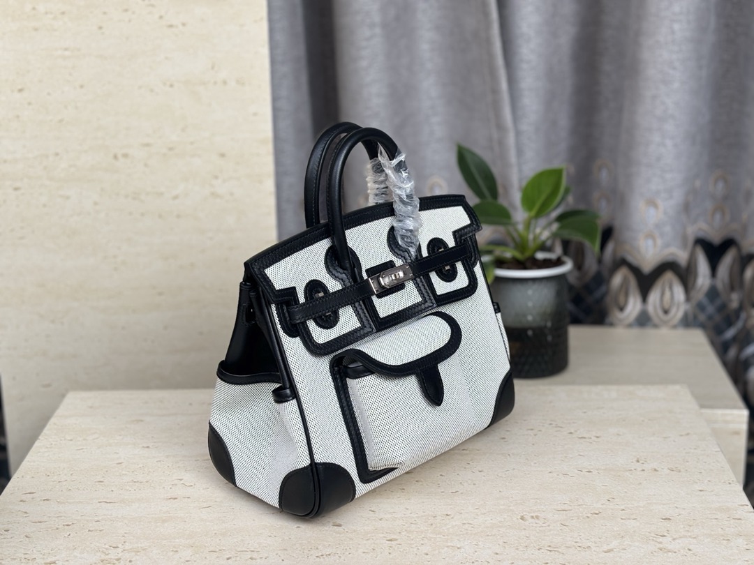 Hermes Birkin Cargo HAC 25 Bleu Glacier Canvas & Black Box Calf Palladium Hardware