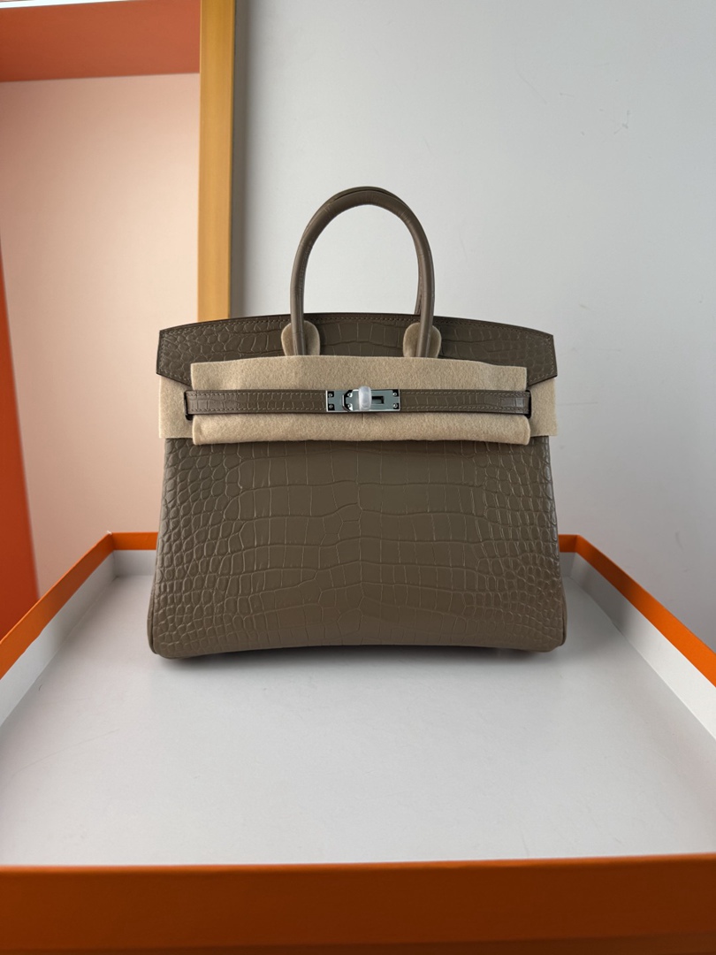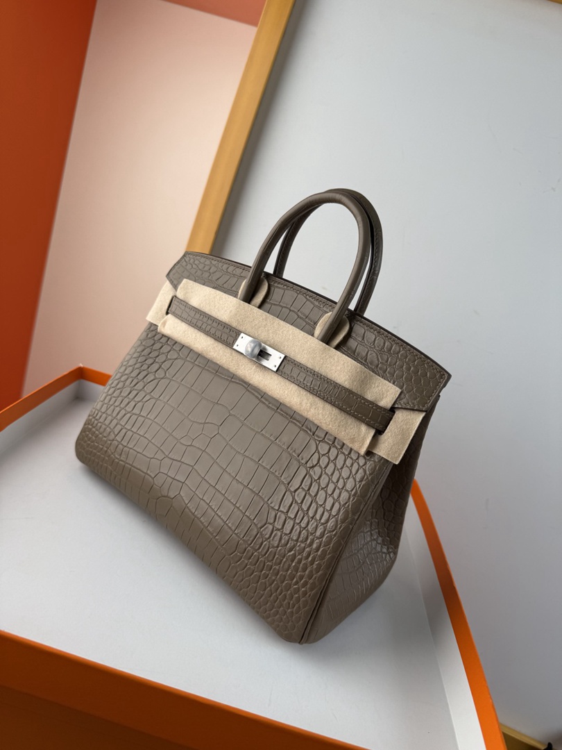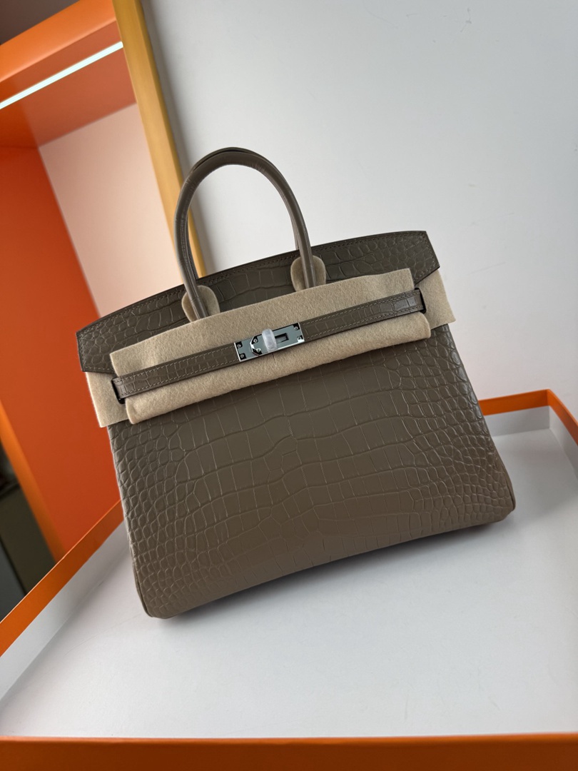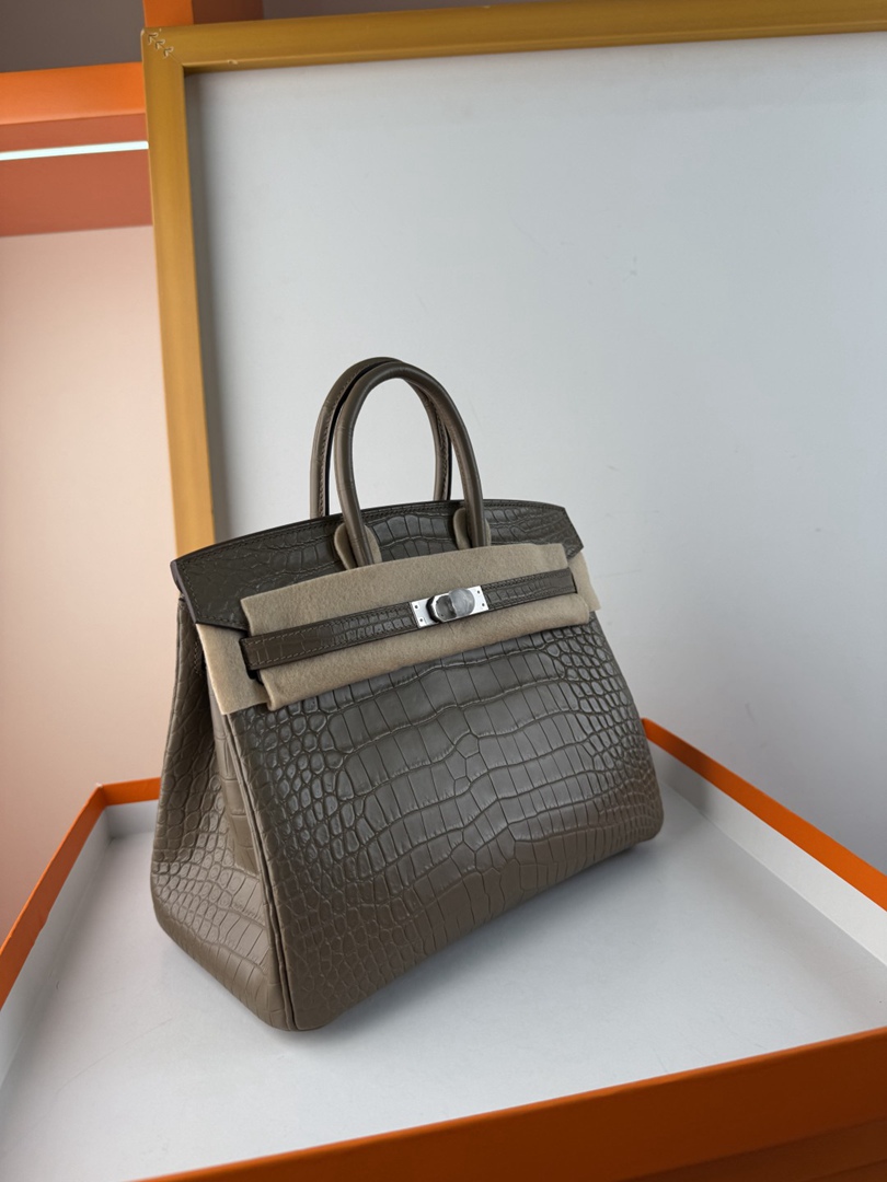 Hermes Birkin 25 Matt Alligator Crocodile Handbag in Etoupe