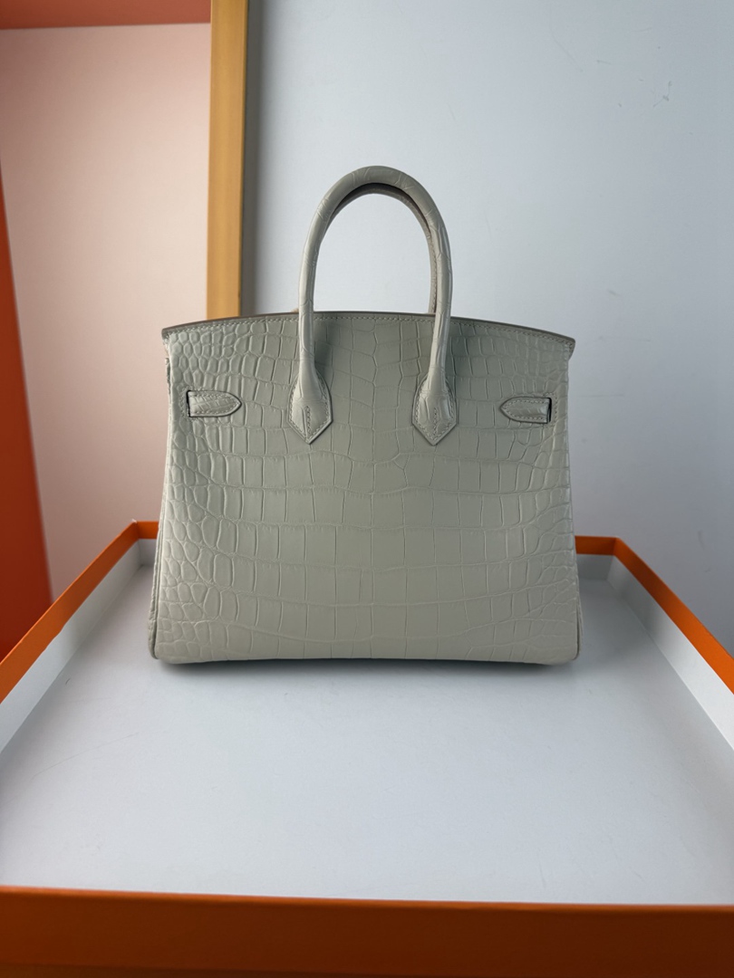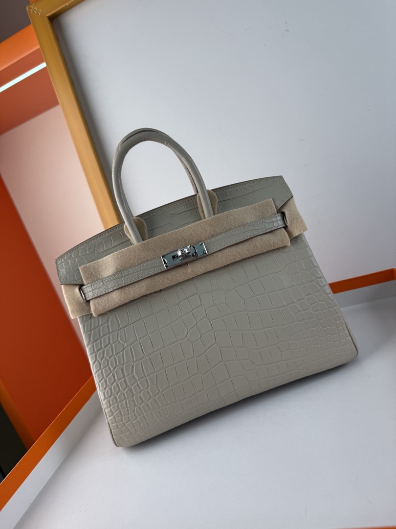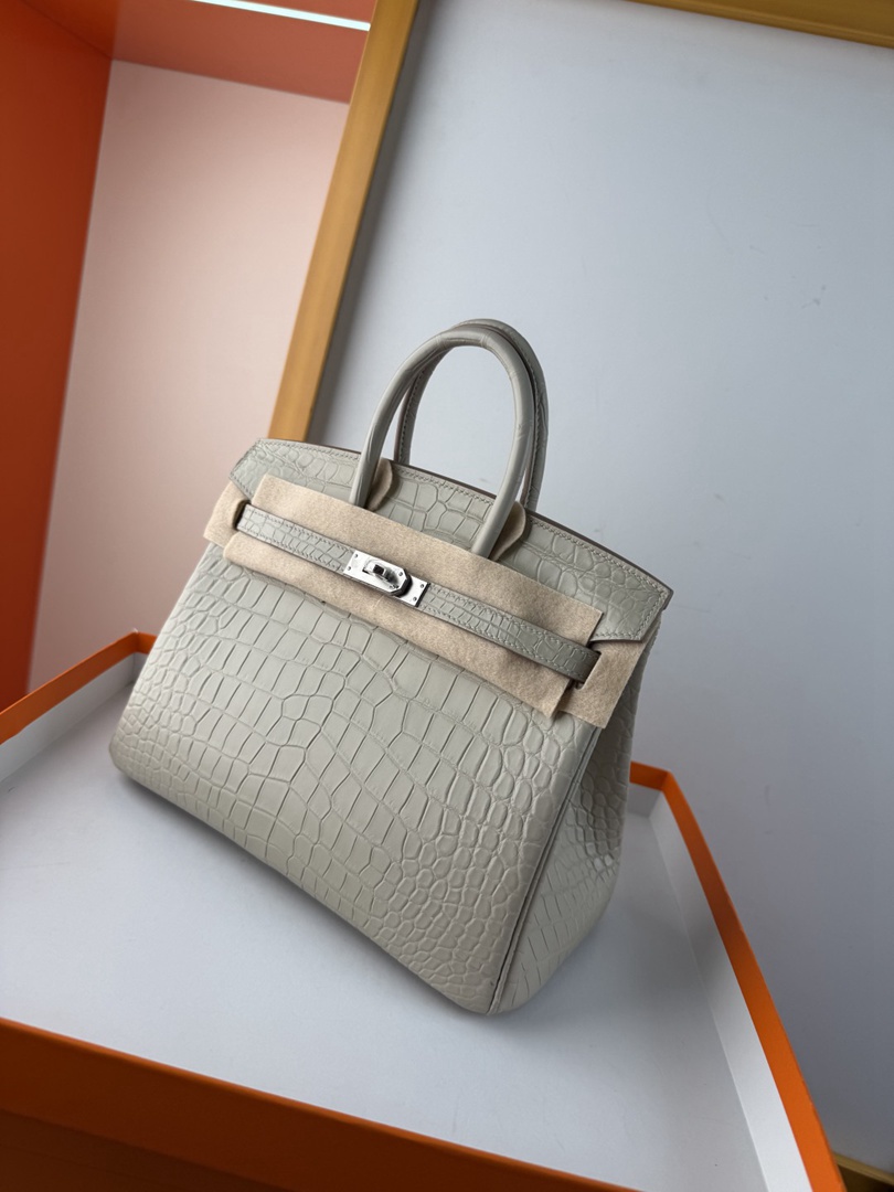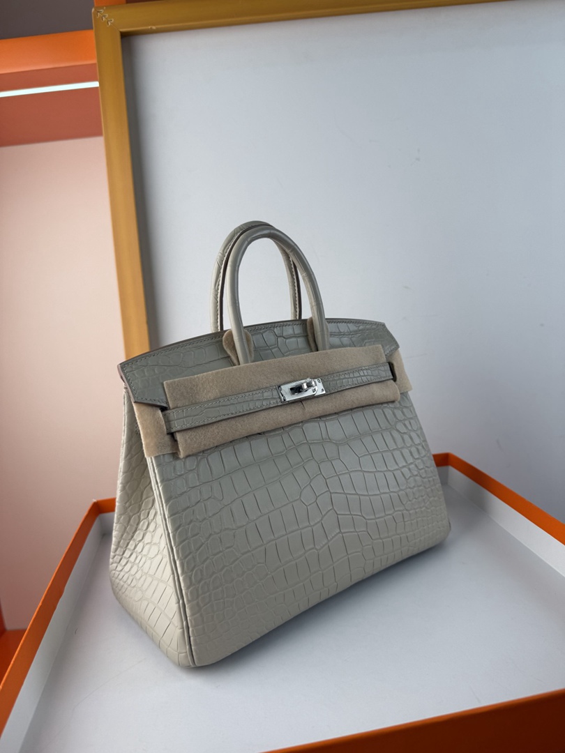 Hermes Birkin 25 Matt Alligator Crocodile Handbag in Pearl grey