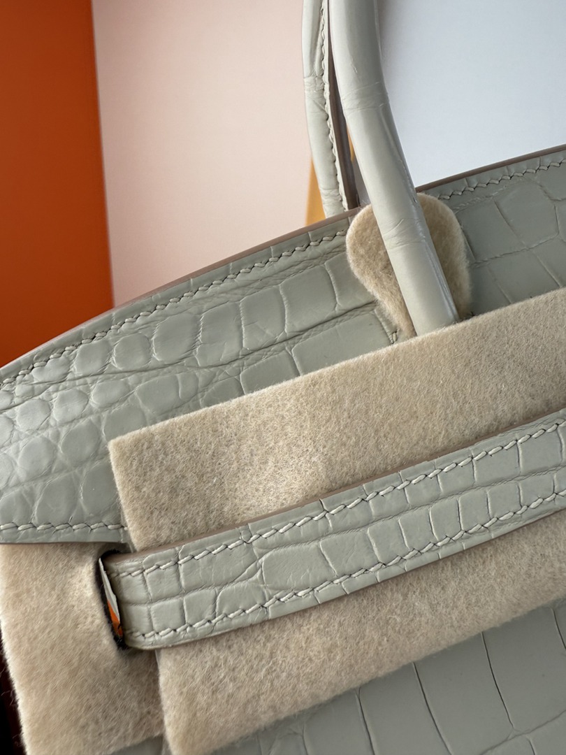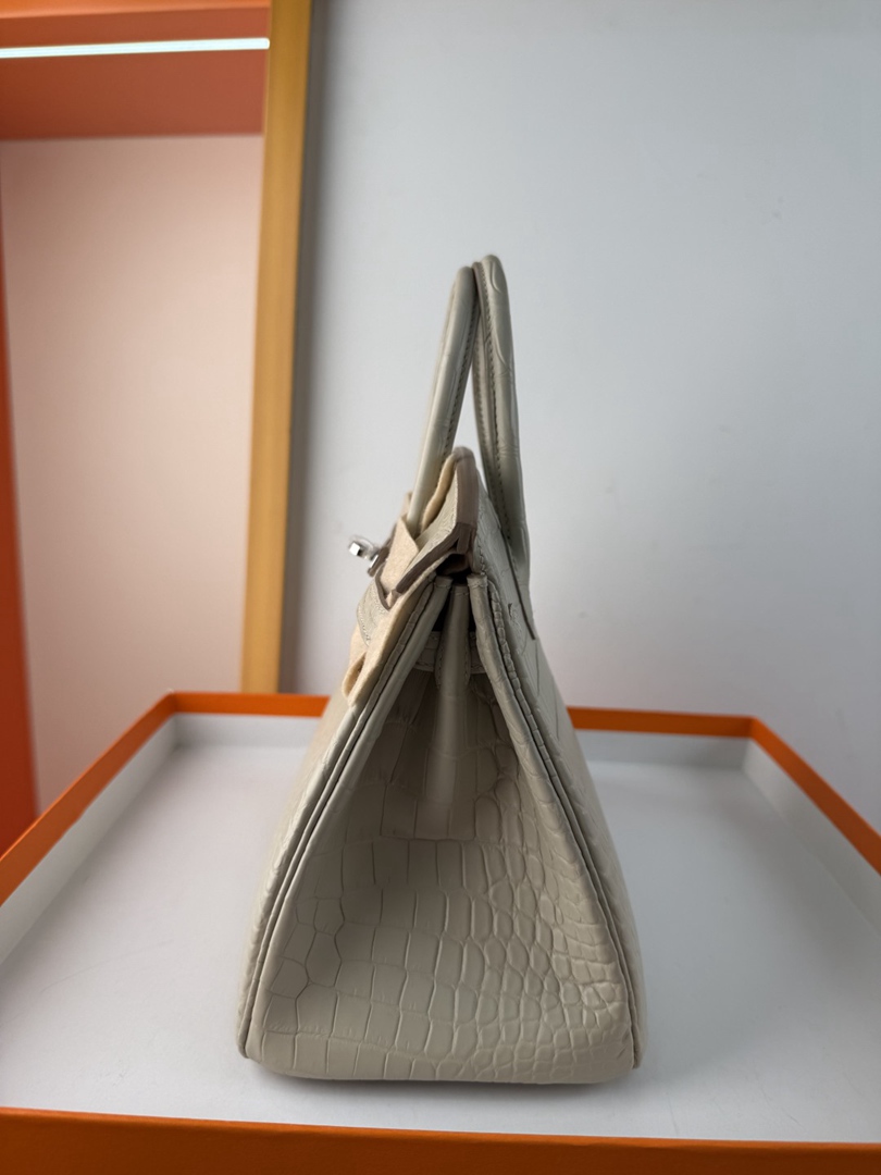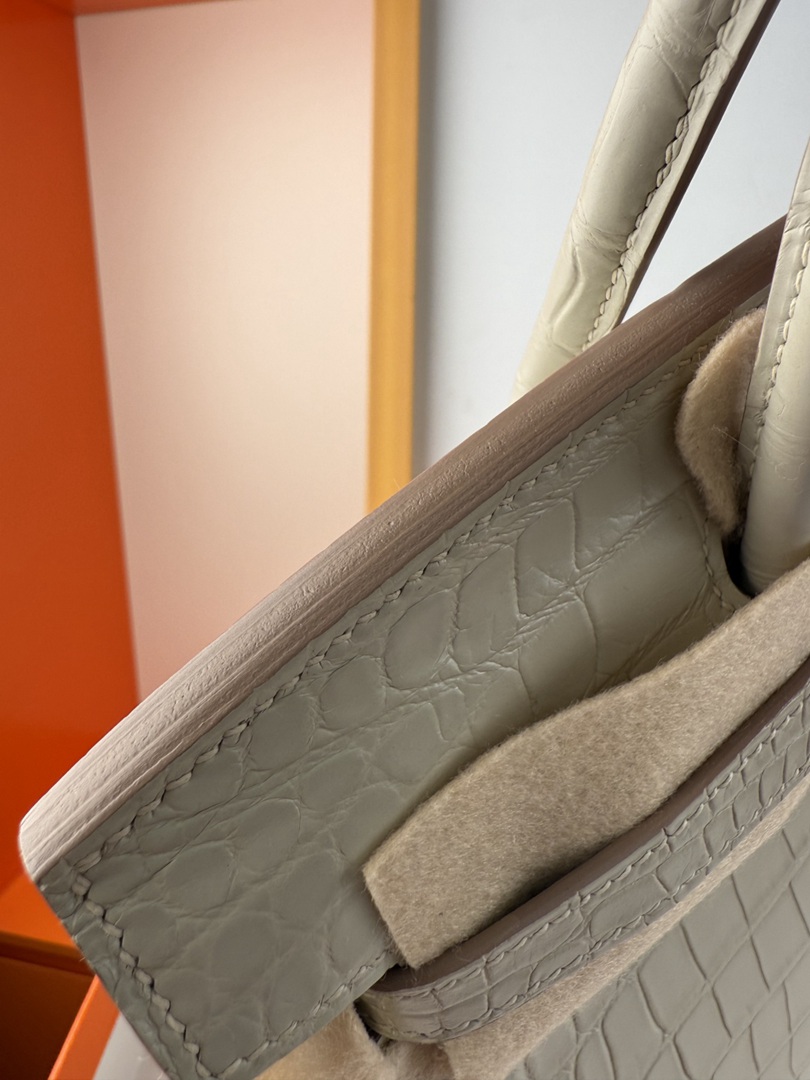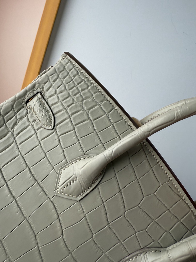 Hermes Birkin 25 Matt Alligator Crocodile Handbag in Pearl grey