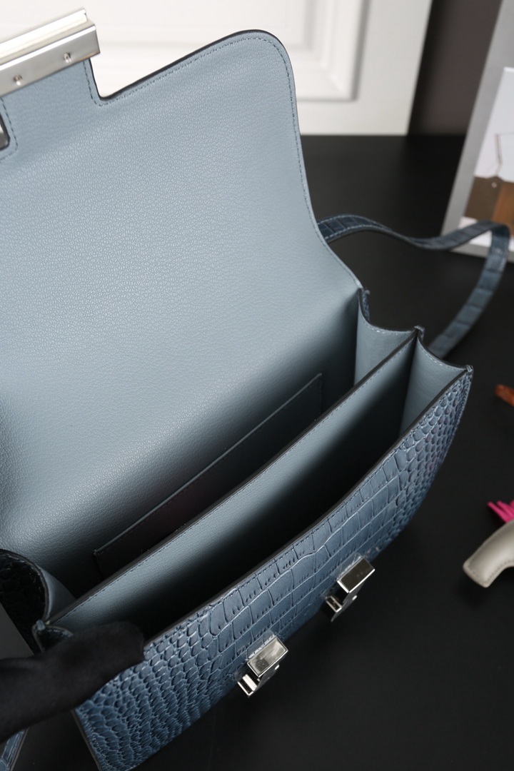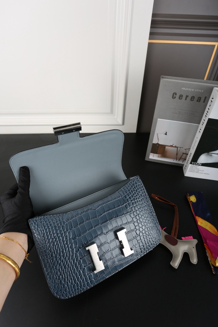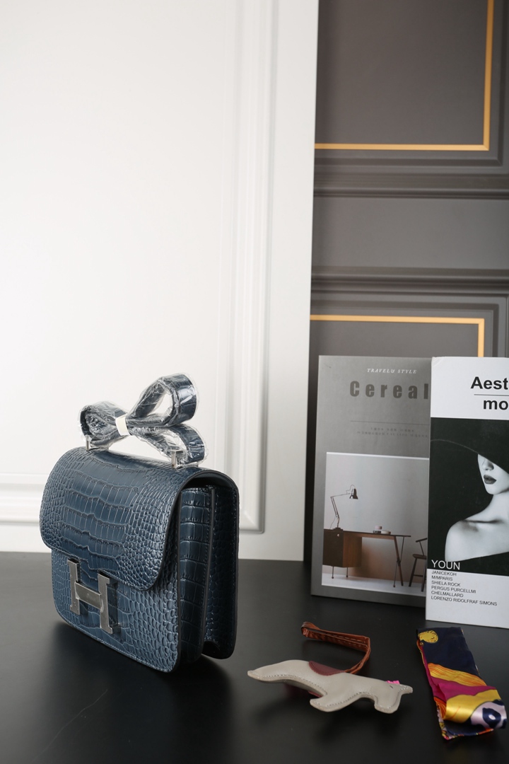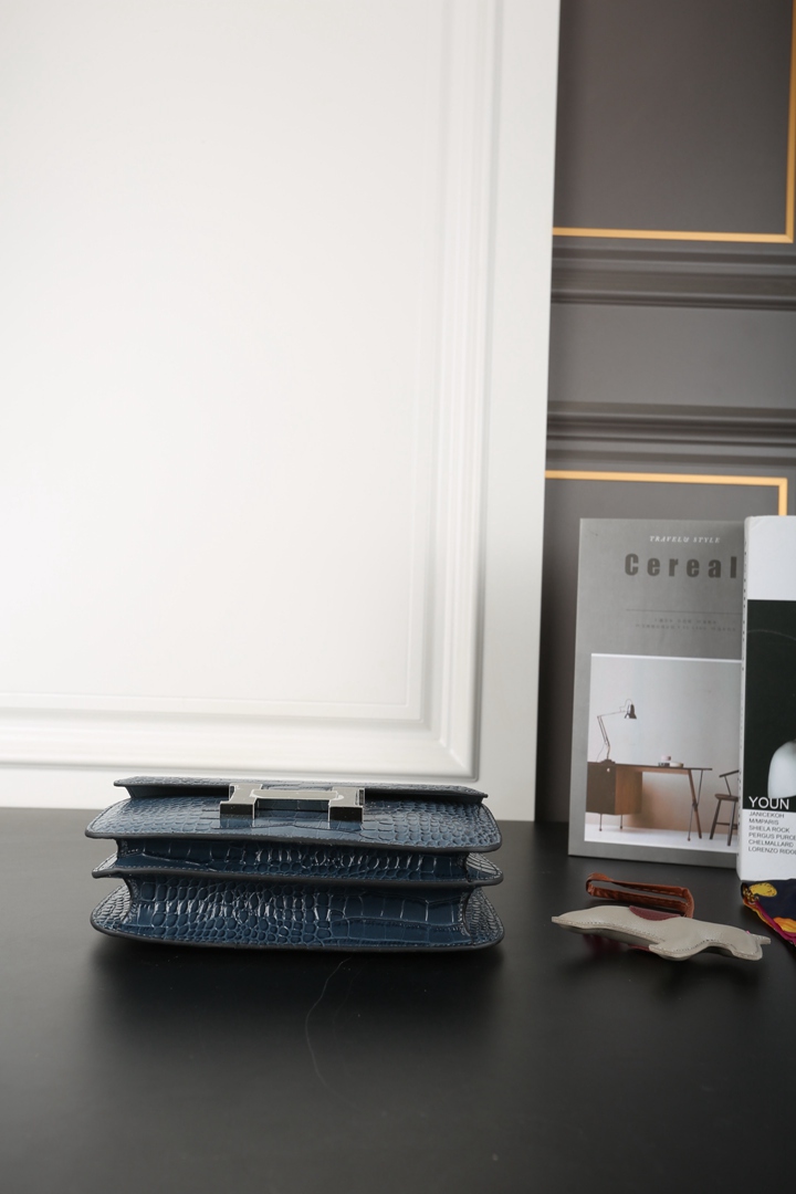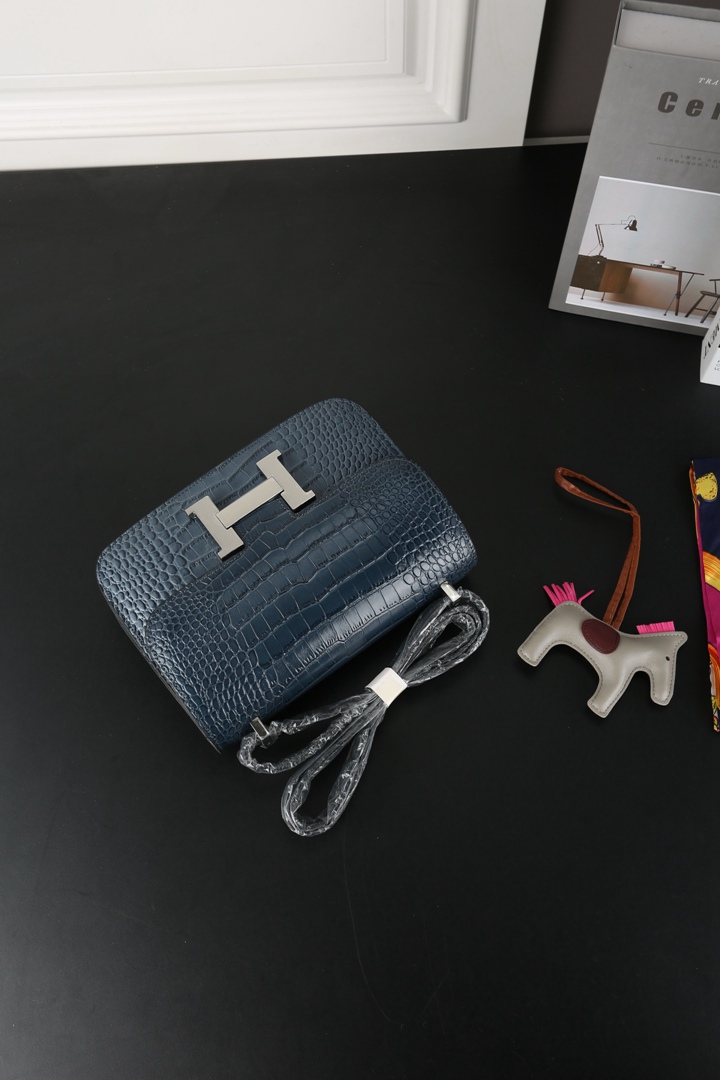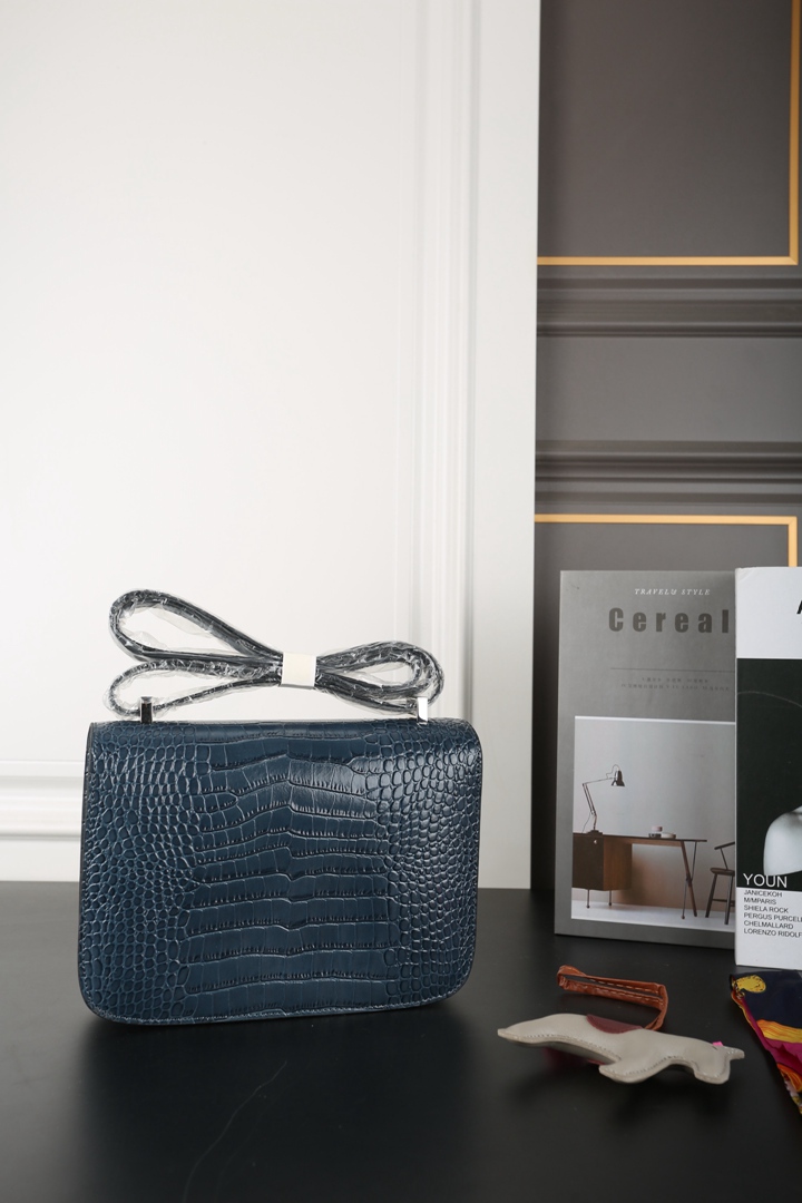 Hermes Constance Alligator Shoulder Bag Deep bleu
