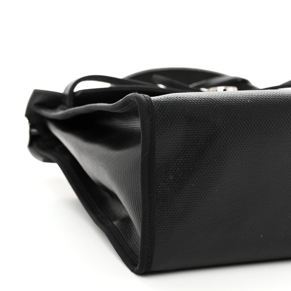 This stylish tote is crafted of sturdy toile coated canvas in black. The shoulder bag features a rear exterior toile canvas zip pocket, a black leather top crest with a leather top handle, a shoulder strap and strap closure with polished palladium silver hardware with a padlock. This opens to a toile canvas interior with a matching removable pochette. This is a stunning tote for everyday use, from Hermes!