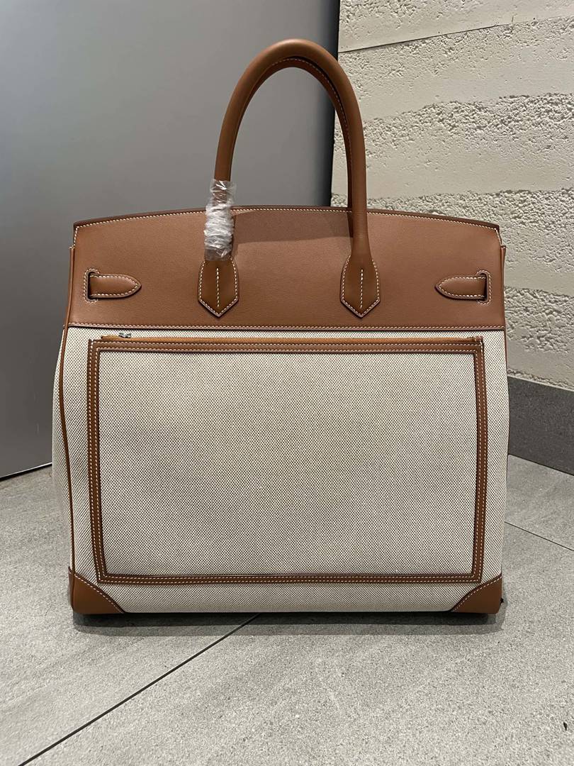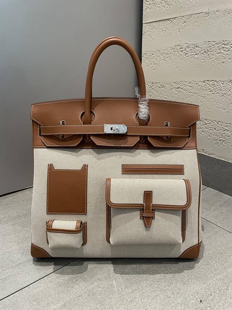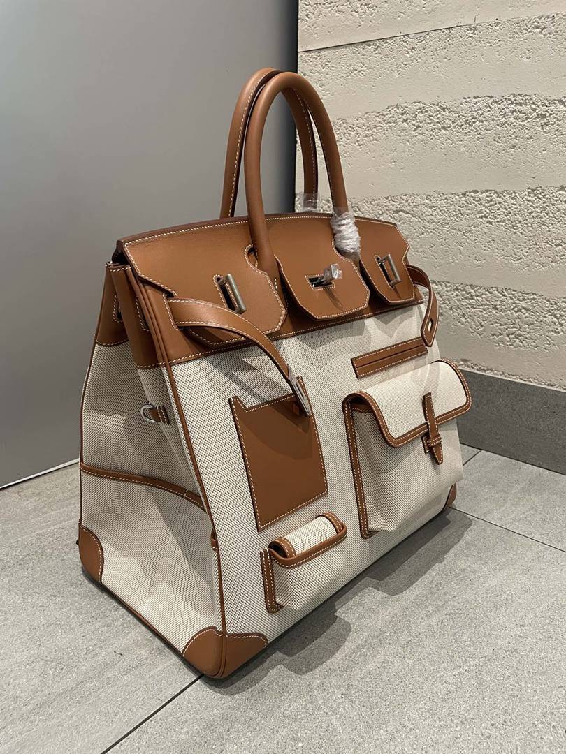 Hermes Birkin Cargo HAC 40 Craie Canvas & Brown Box Calf Palladium Hardware