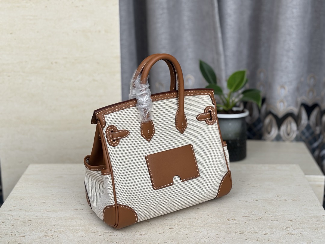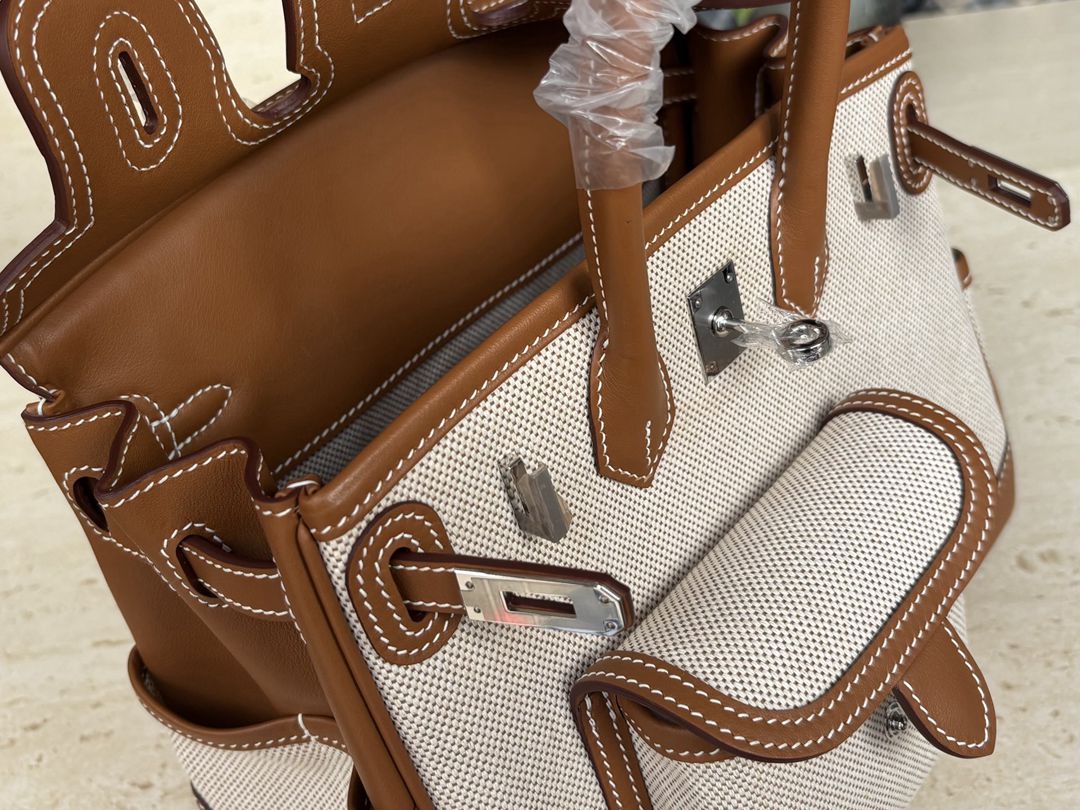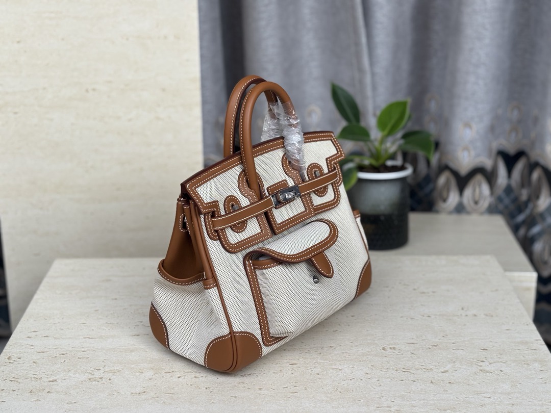Hermes Birkin Cargo HAC 25 Craie Canvas & Brown Box Calf Palladium Hardware