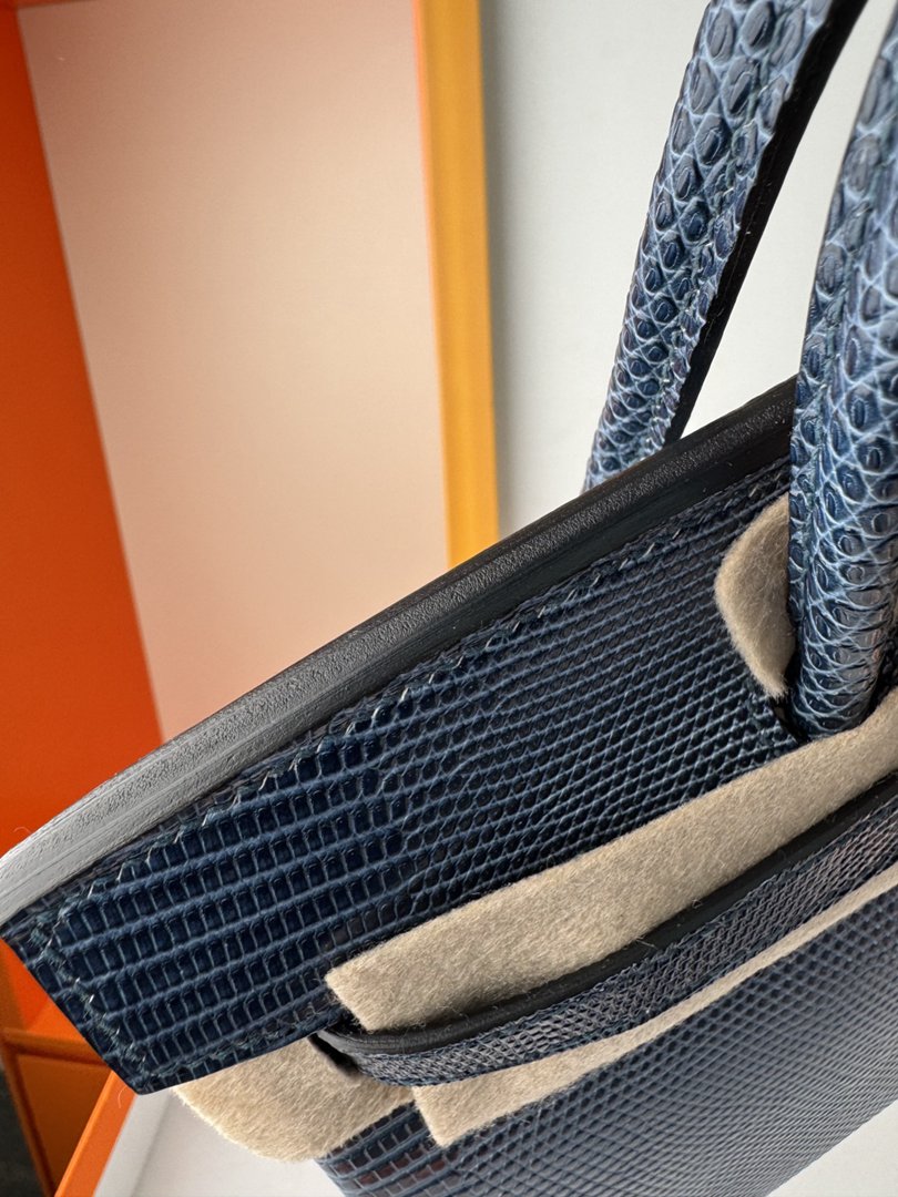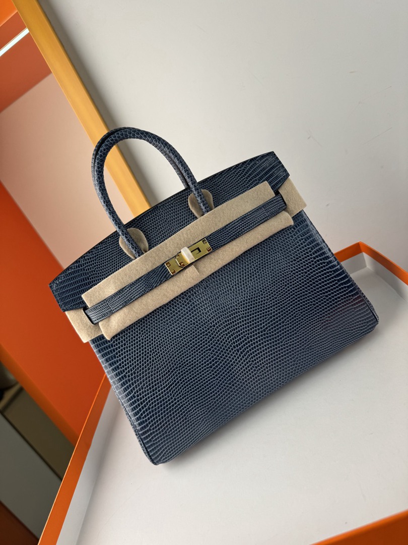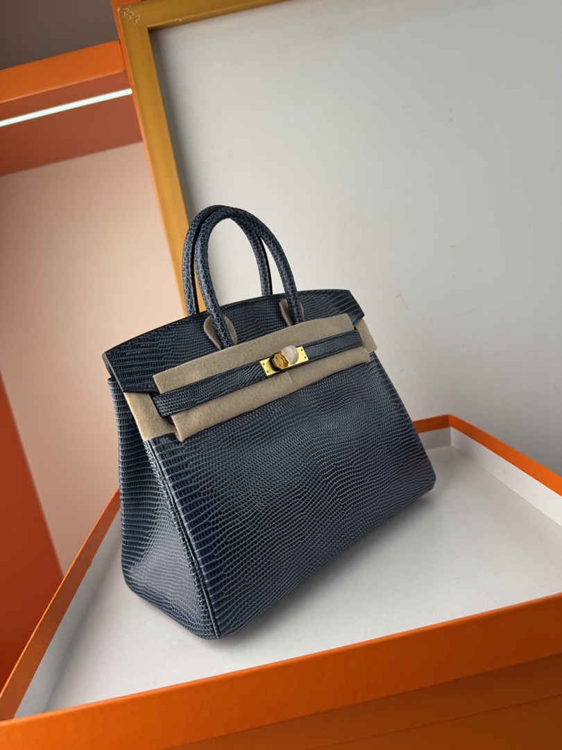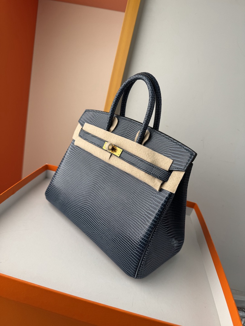 Hermes Birkin 25 Lizard Handbag in Blue Saphir