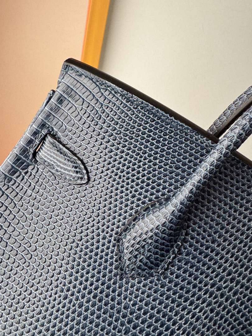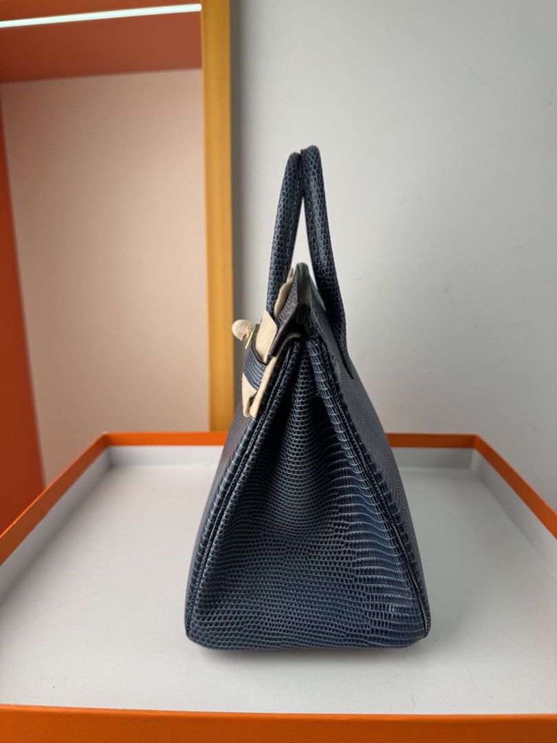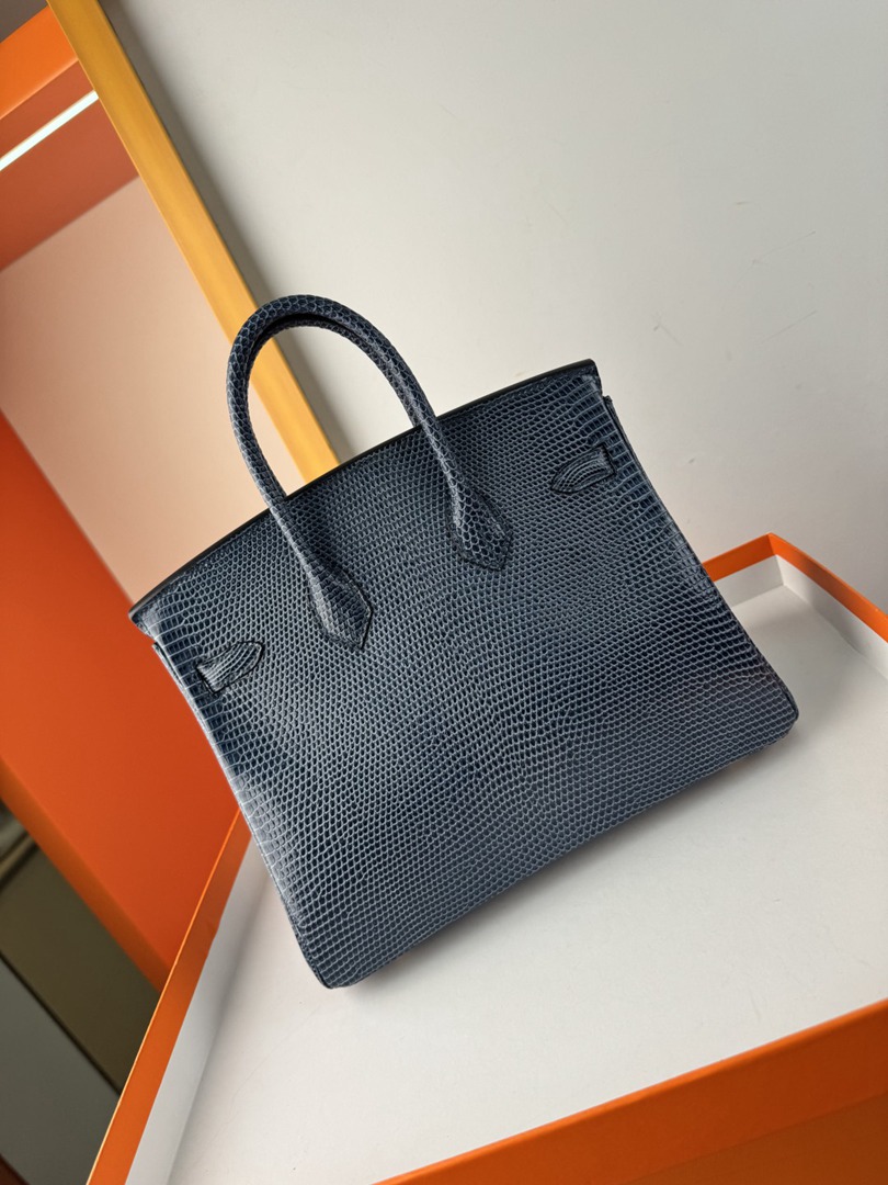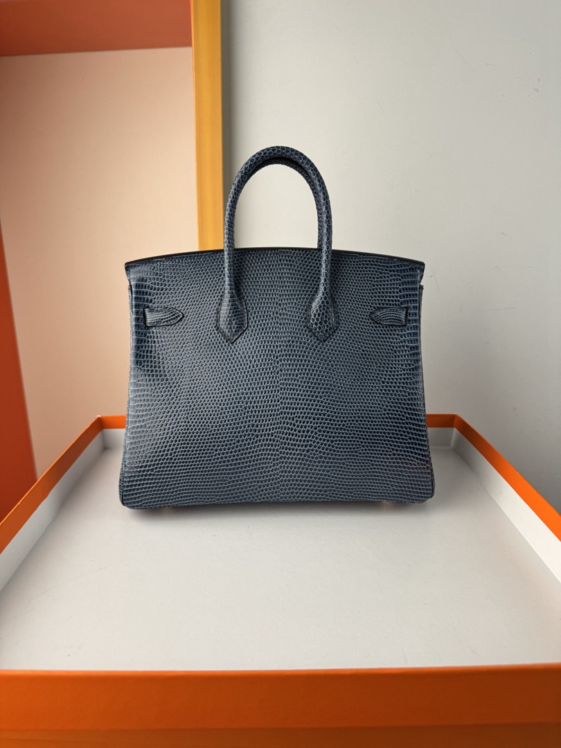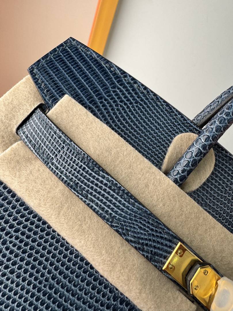 Hermes Birkin 25 Lizard Handbag in Blue Saphir