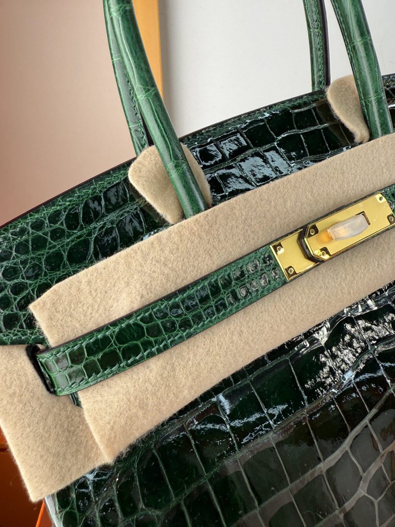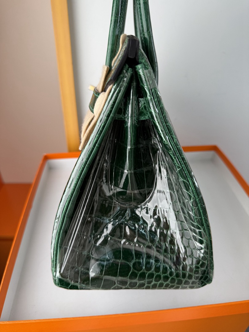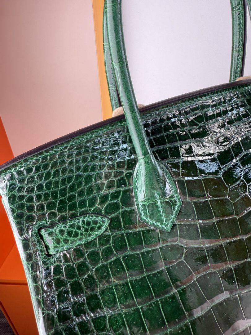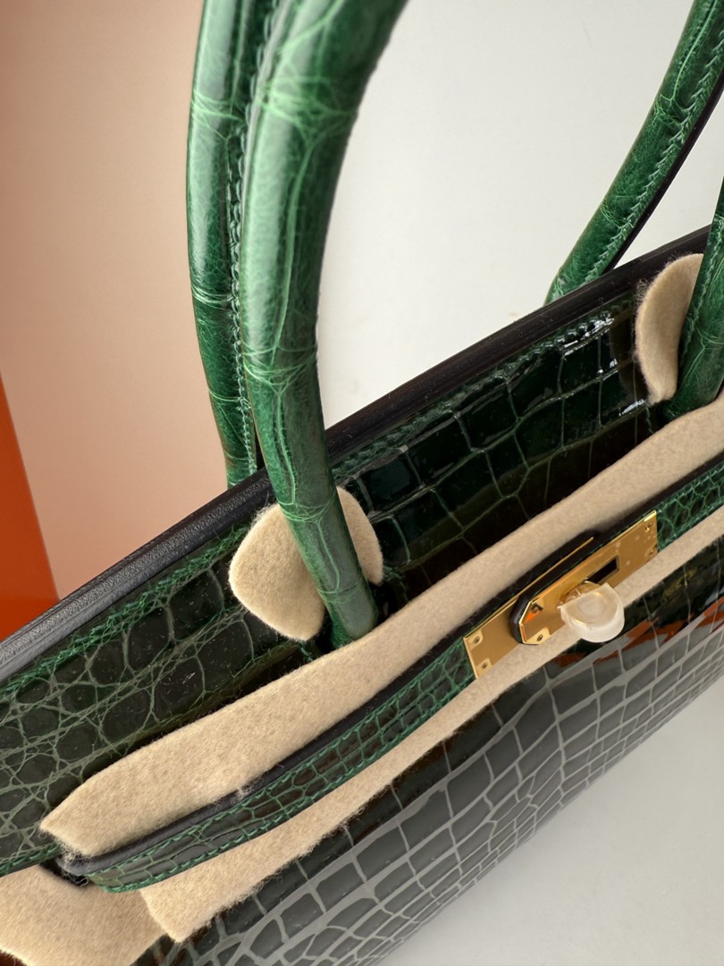 Hermes Birkin 25 Shiny Alligator Crocodile Handbag in Vert Emeraude