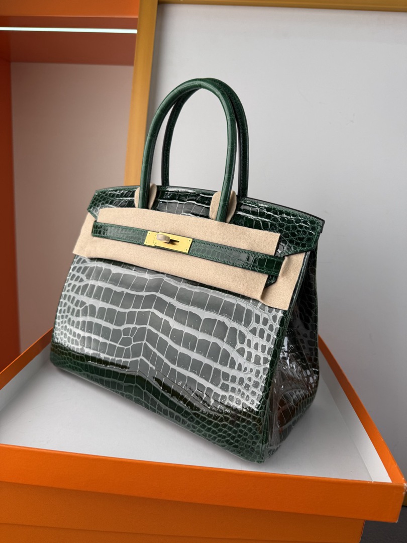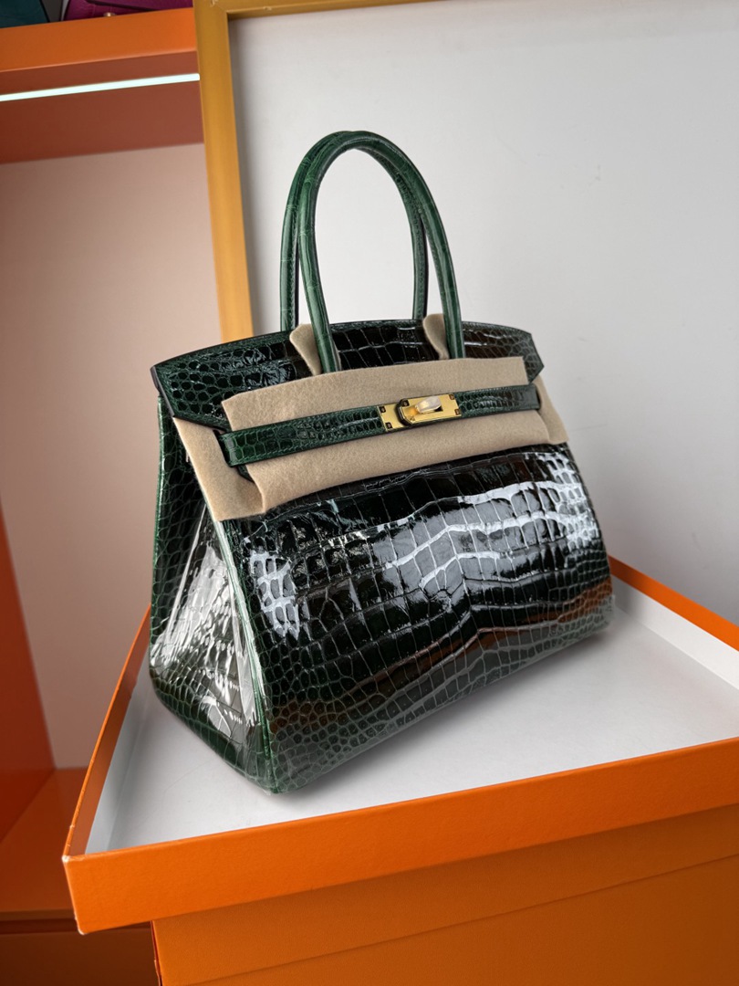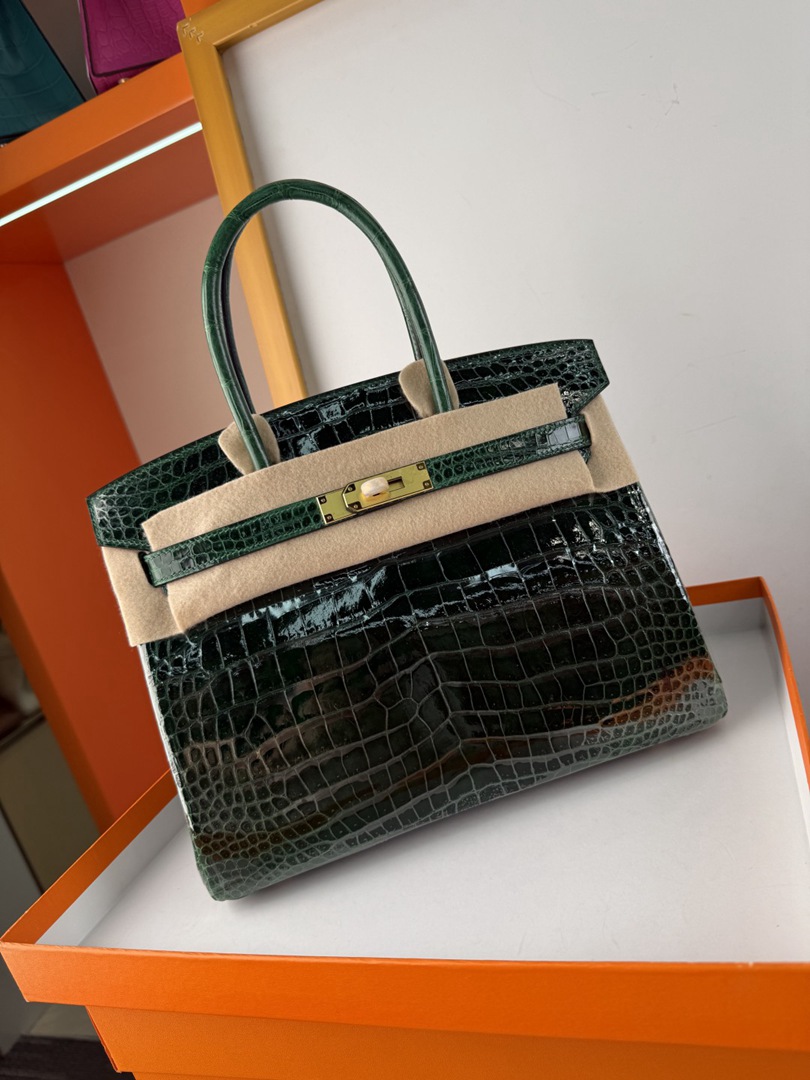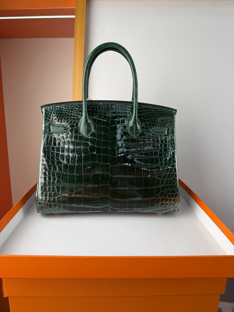 Hermes Birkin 25 Shiny Alligator Crocodile Handbag in Vert Emeraude