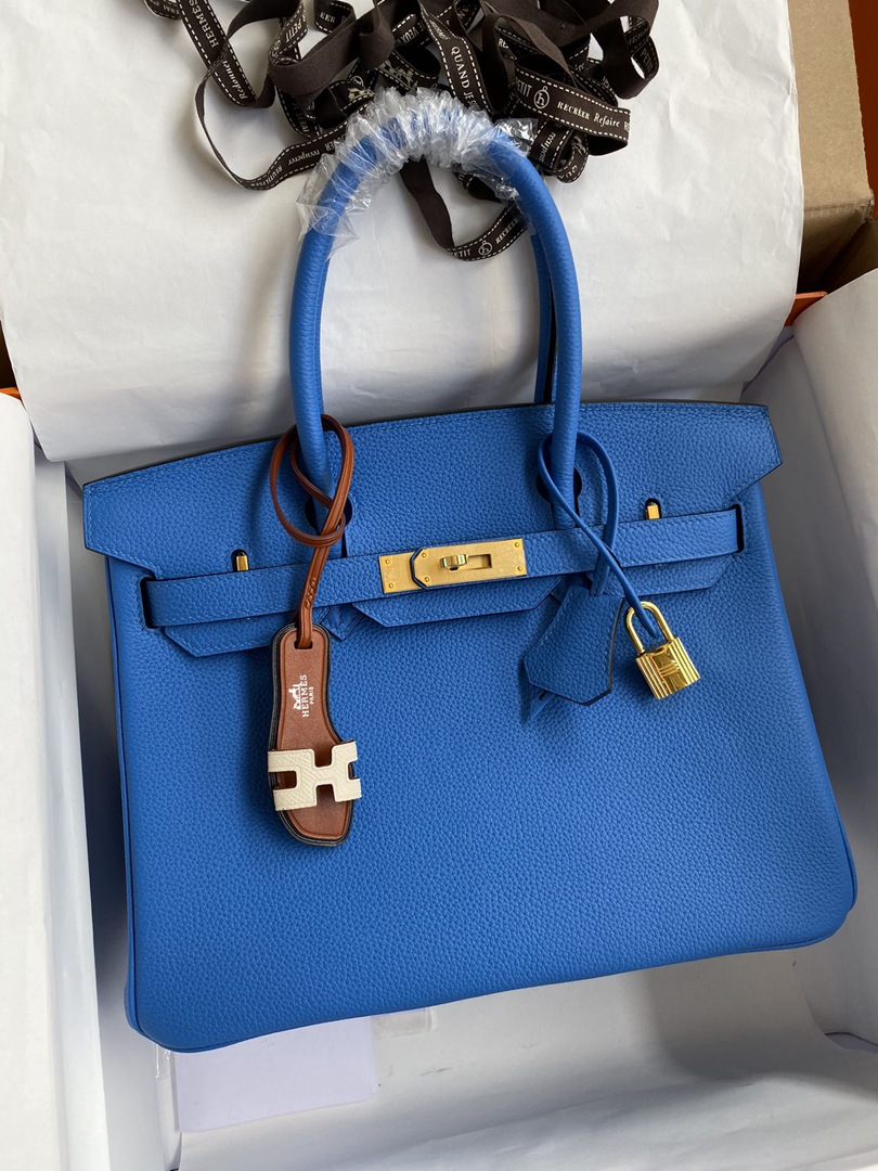 Hermes Birkin 25 30 35 Epsom Handbag in Blue Zanzibar